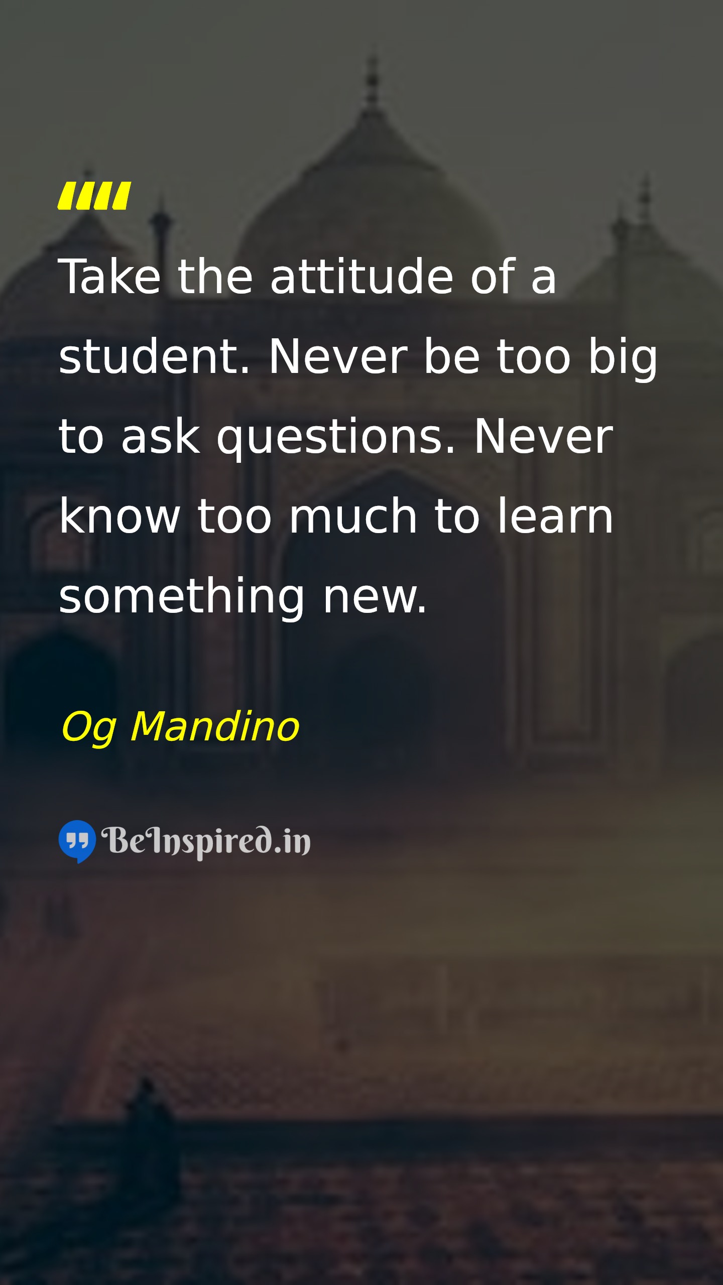 Take the attitude of a student. Never be too big to ask questions. Never know too much to learn something new.