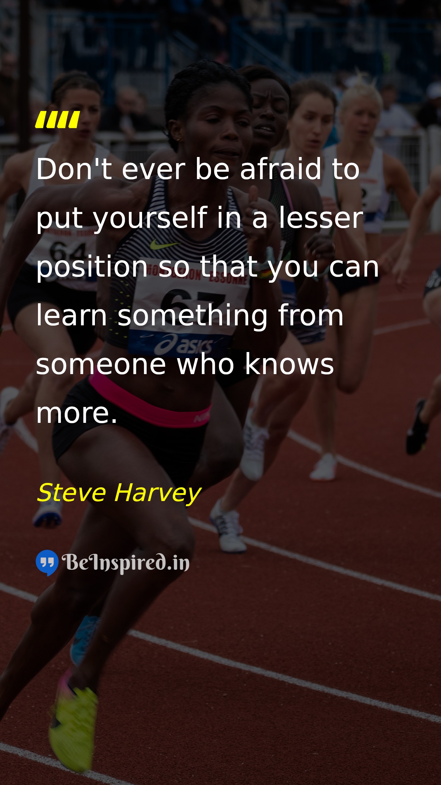 Don't ever be afraid to put yourself in a lesser position so that you can learn something from someone who knows more.