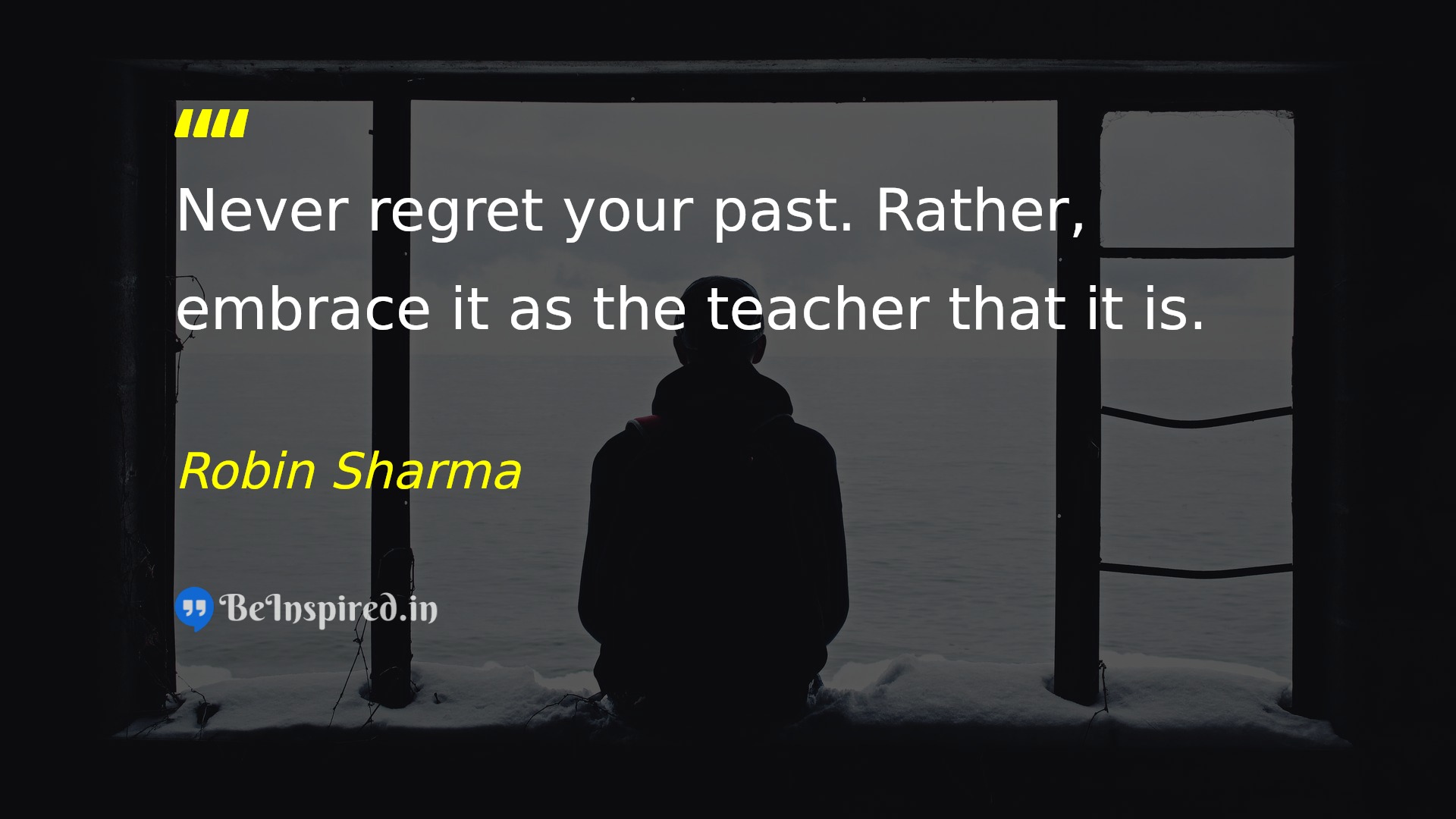 Never regret your past. Rather, embrace it as the teacher that it is.