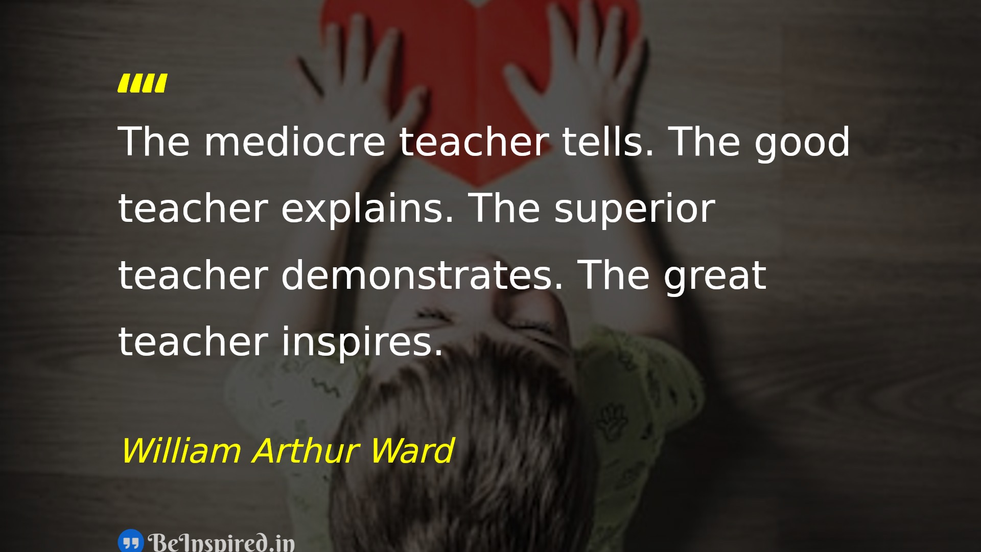 The mediocre teacher tells. The good teacher explains. The superior teacher demonstrates. The great teacher inspires.