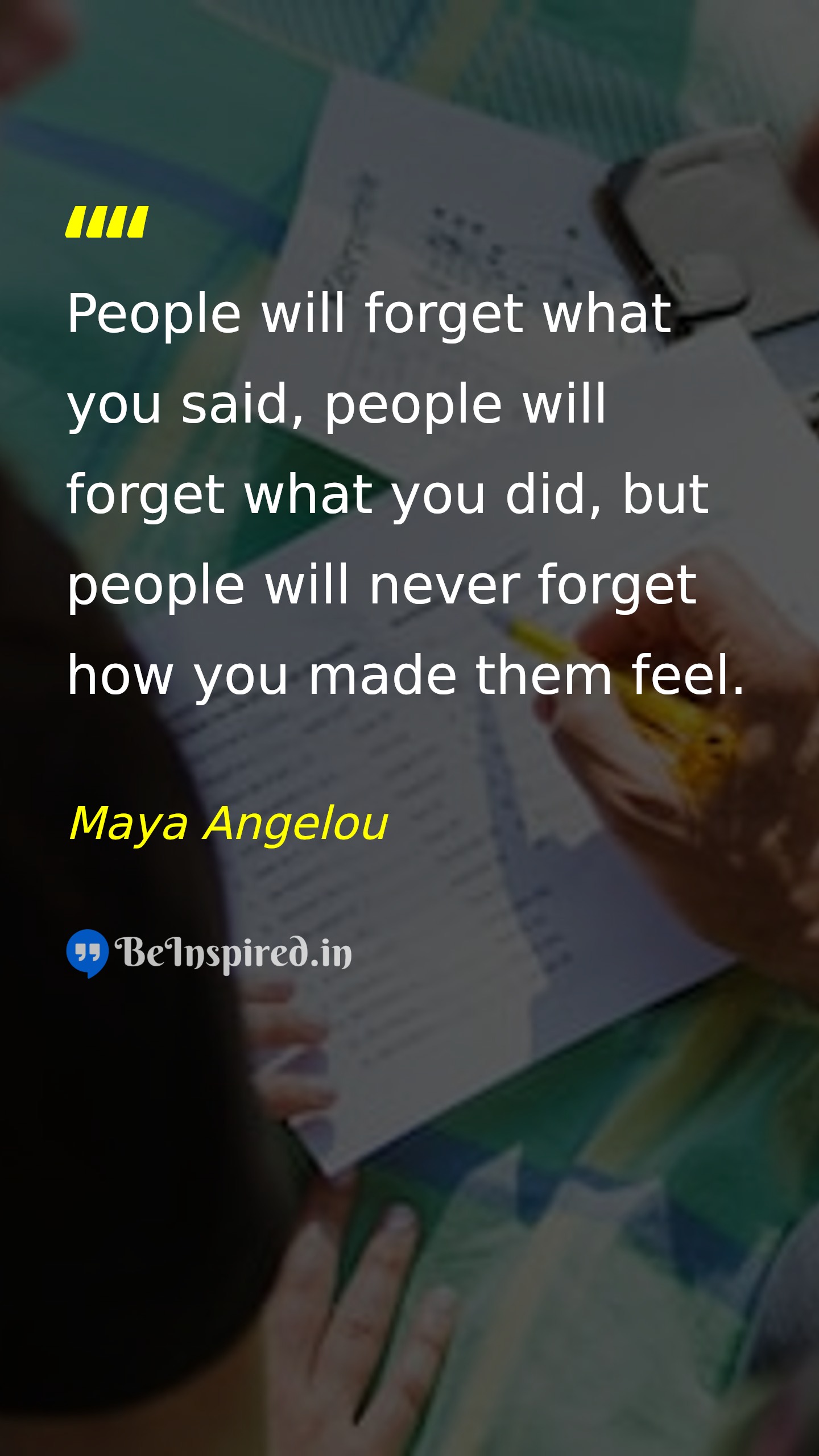 People will forget what you said, people will forget what you did, but people will never forget how you made them feel.