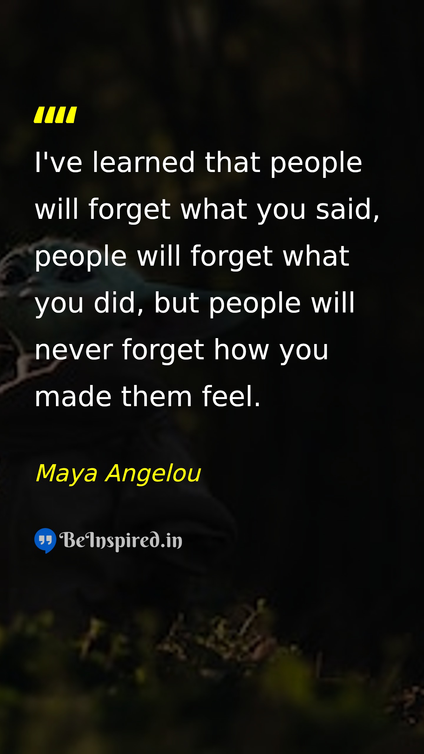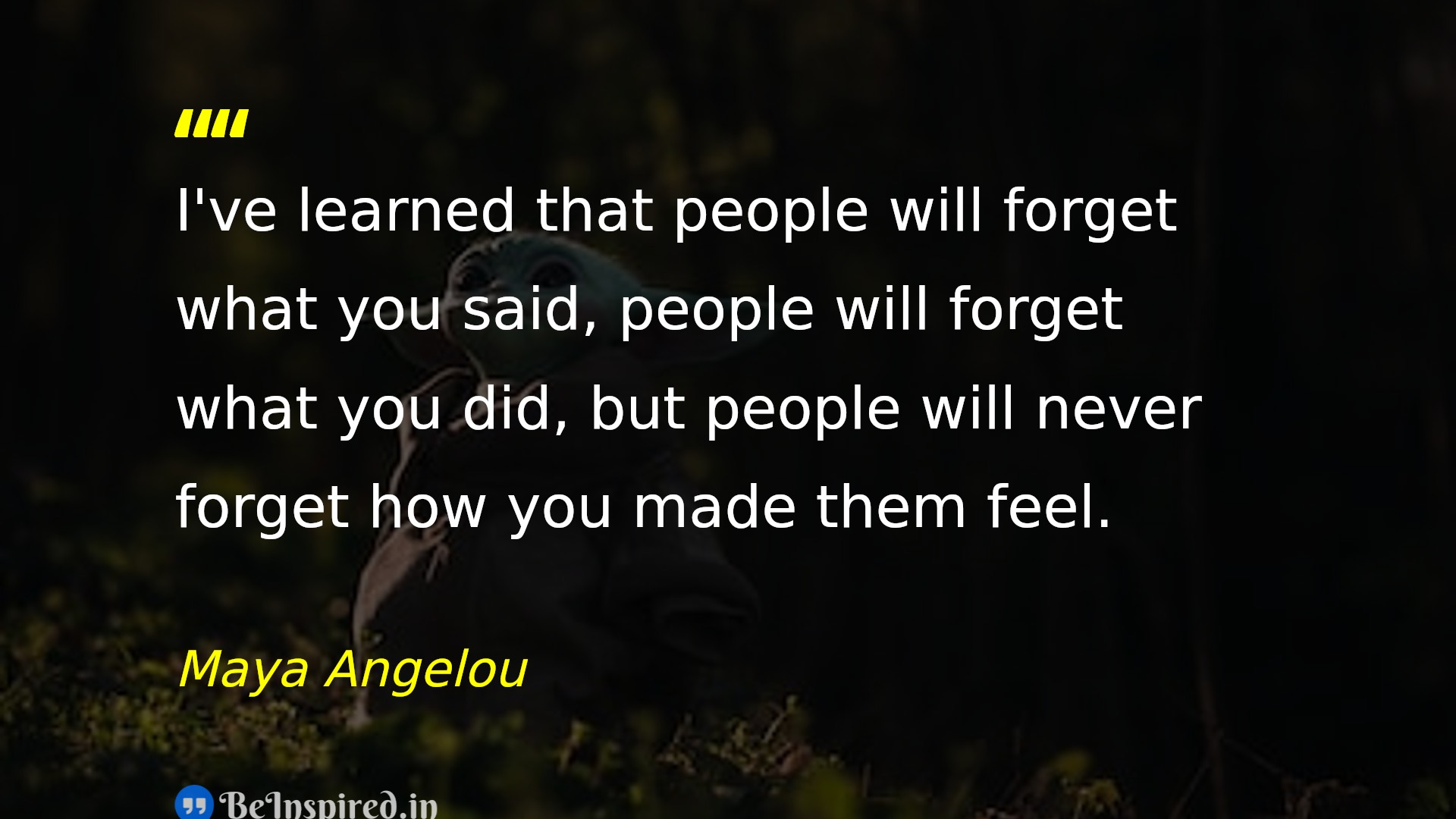 I've learned that people will forget what you said, people will forget what you did, but people will never forget how you made them feel.
