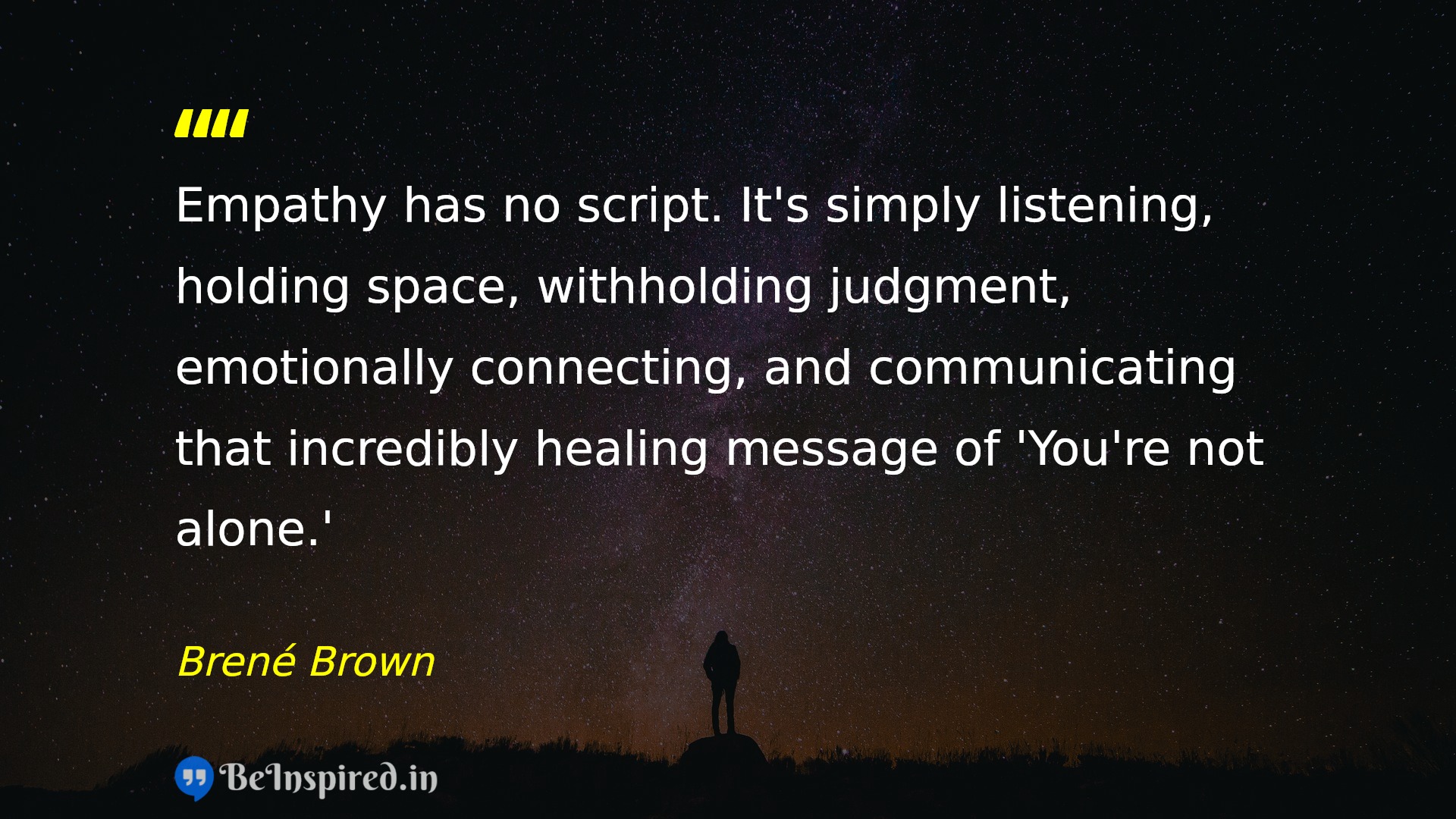 Empathy has no script. It's simply listening, holding space, withholding judgment, emotionally connecting, and communicating that incredibly healing message of 'You're not alone.'