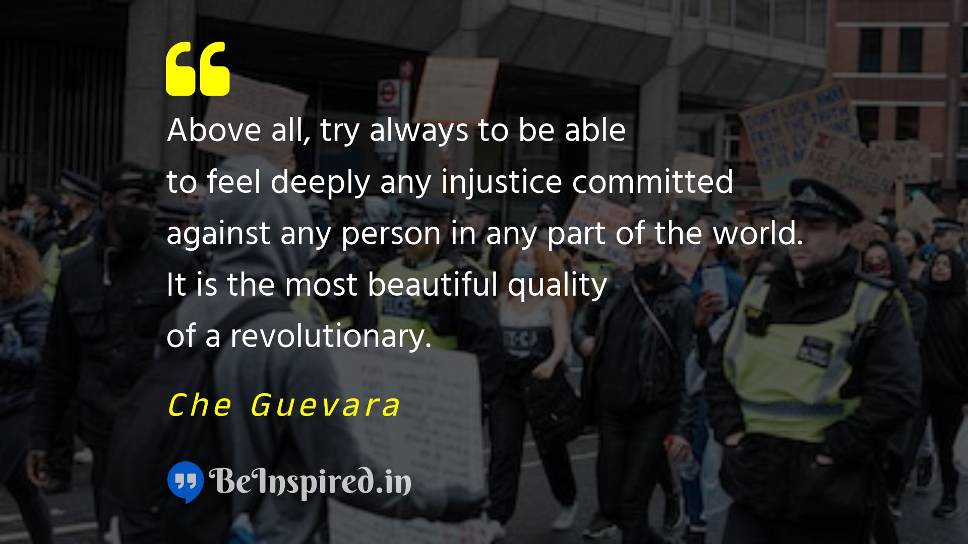 Above all, try always to be able to feel deeply any injustice committed against any person in any part of the world. It is the most beautiful quality of a revolutionary.