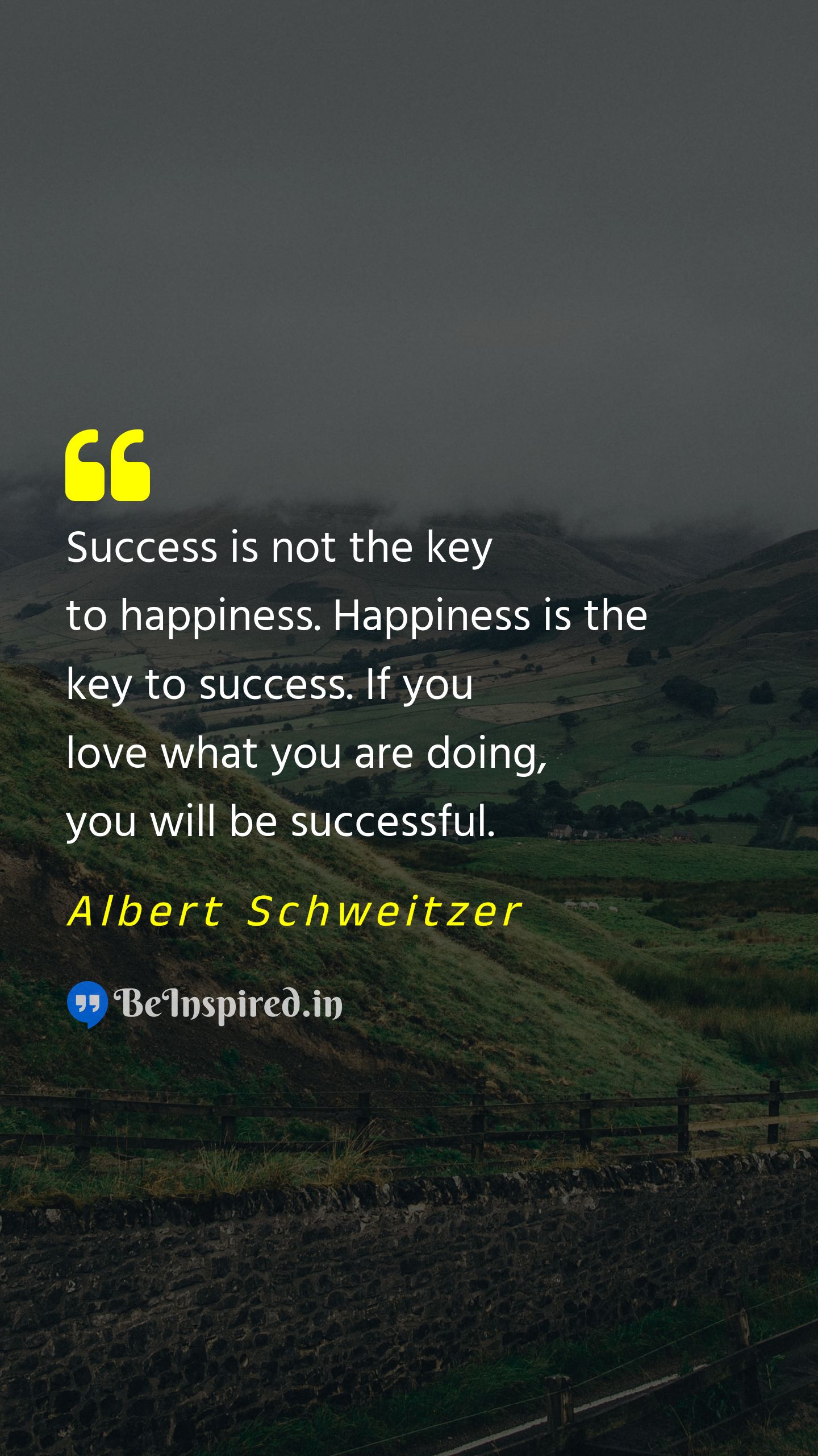 Success is not the key to happiness. Happiness is the key to success. If you love what you are doing, you will be successful.