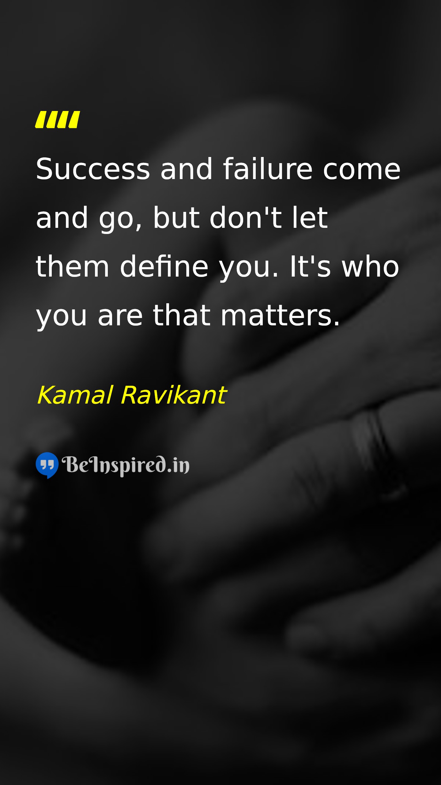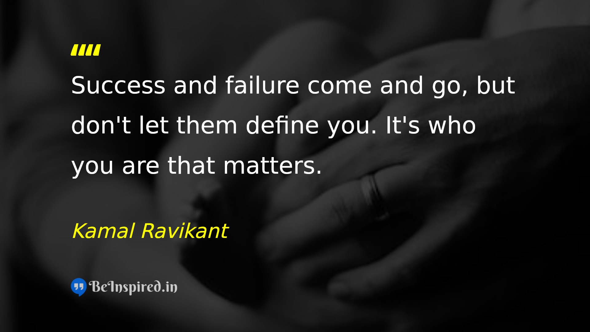 Success and failure come and go, but don't let them define you. It's who you are that matters.