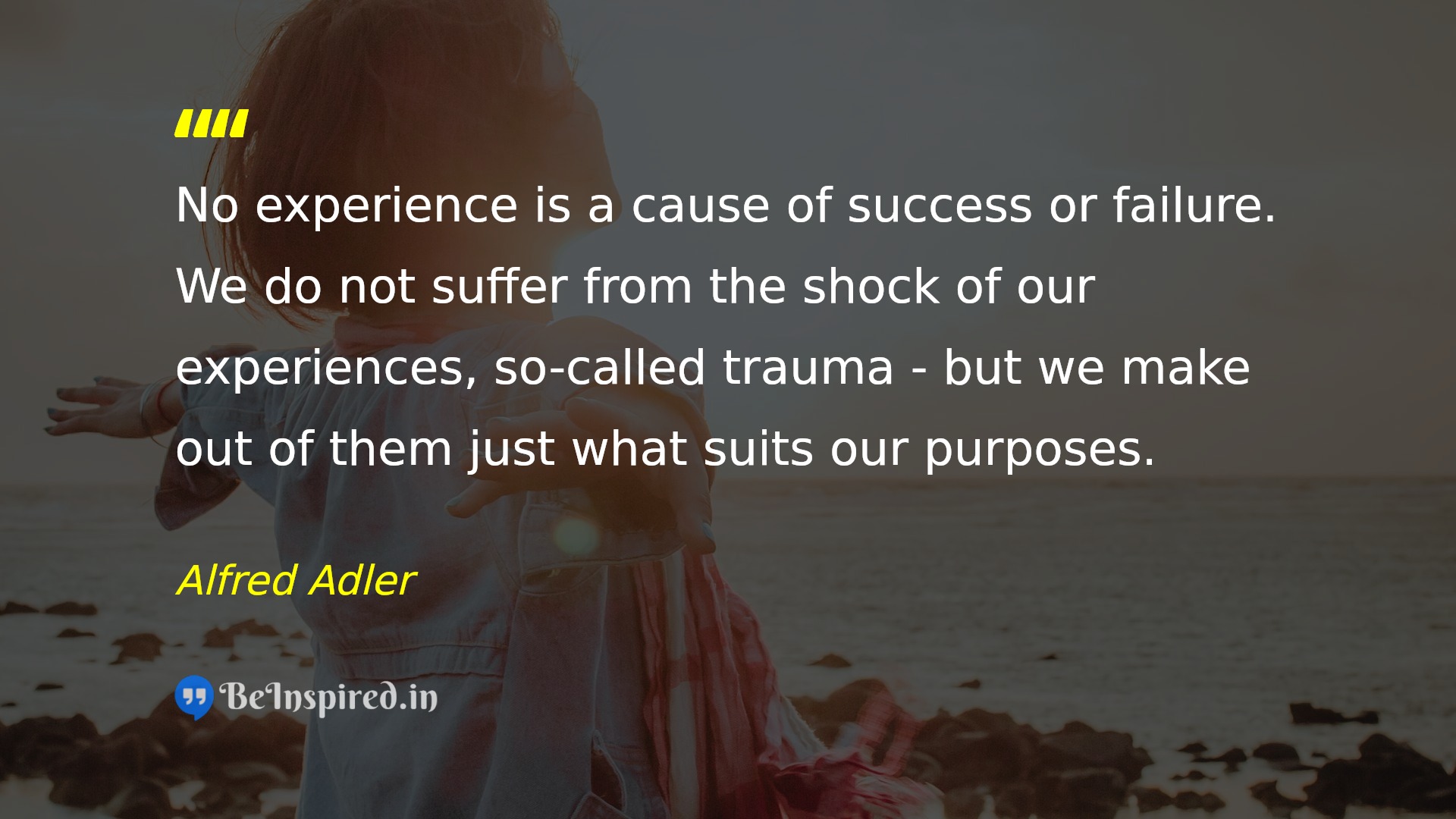 No experience is a cause of success or failure. We do not suffer from the shock of our experiences, so-called trauma - but we make out of them just what suits our purposes.