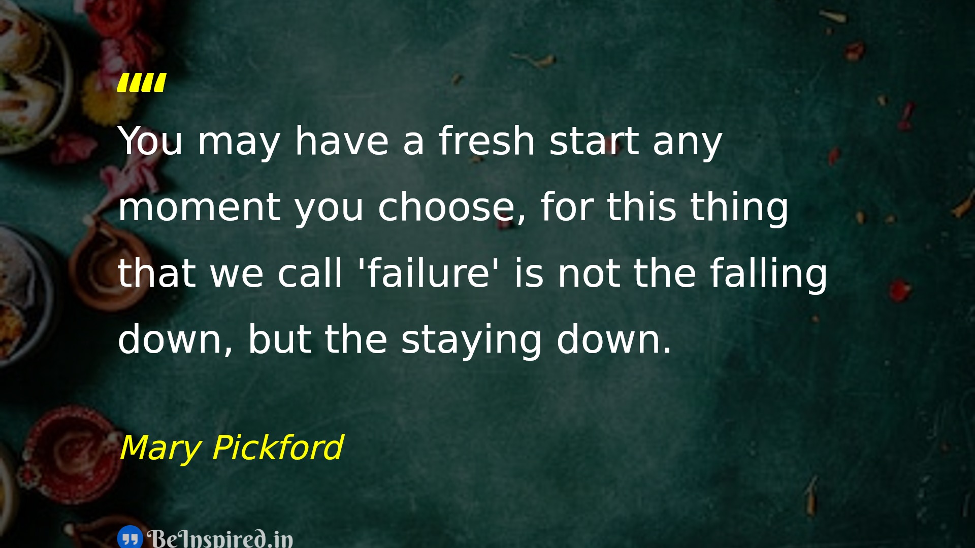 You may have a fresh start any moment you choose, for this thing that we call 'failure' is not the falling down, but the staying down.