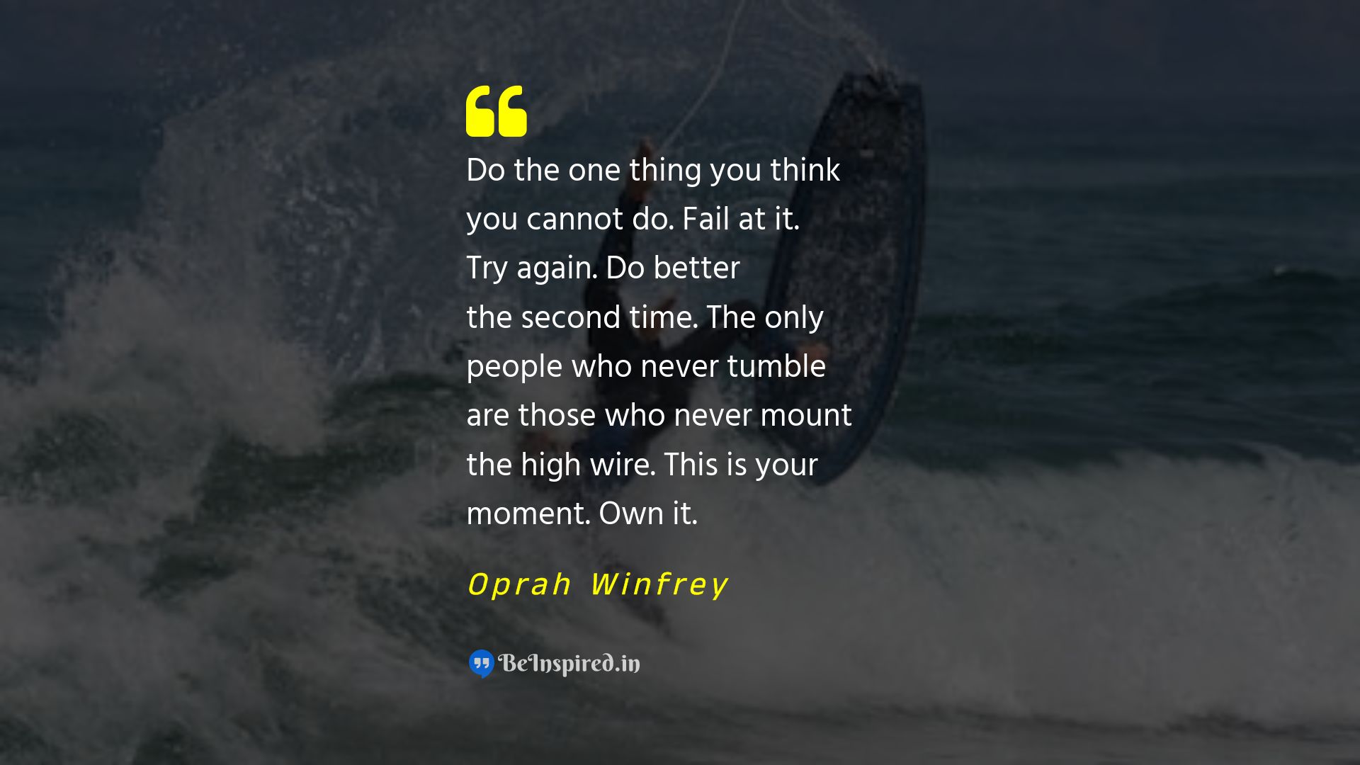 Do the one thing you think you cannot do. Fail at it. Try again. Do better the second time. The only people who never tumble are those who never mount the high wire. This is your moment. Own it.
