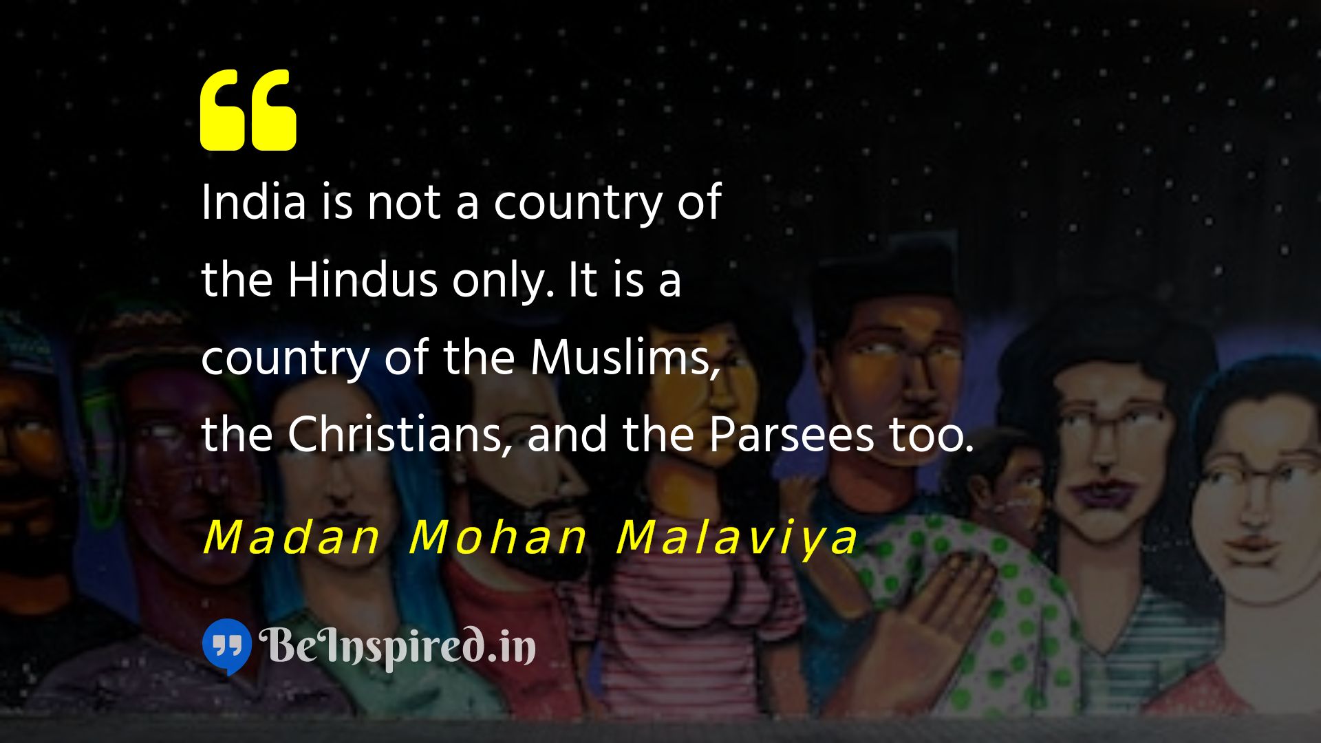 India is not a country of the Hindus only. It is a country of the Muslims, the Christians, and the Parsees too.