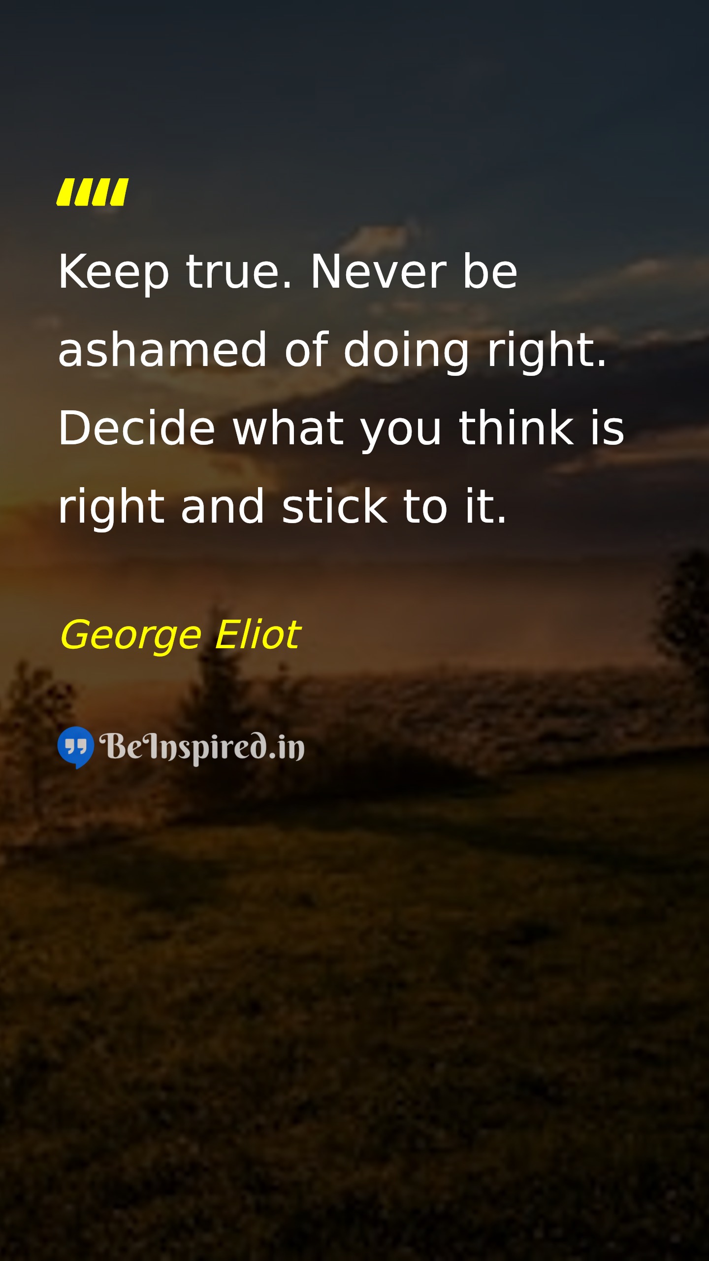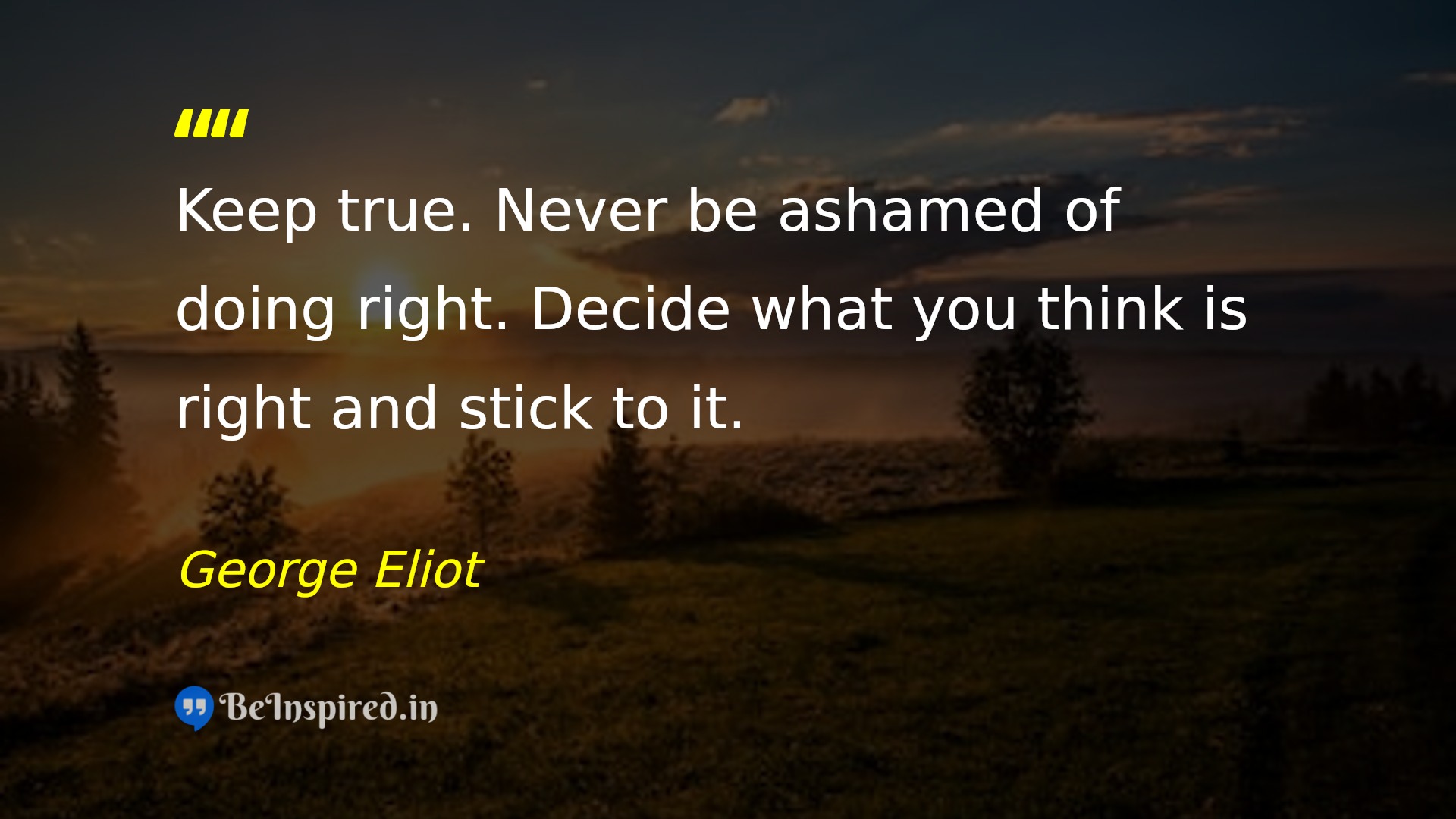 Keep true. Never be ashamed of doing right. Decide what you think is right and stick to it.