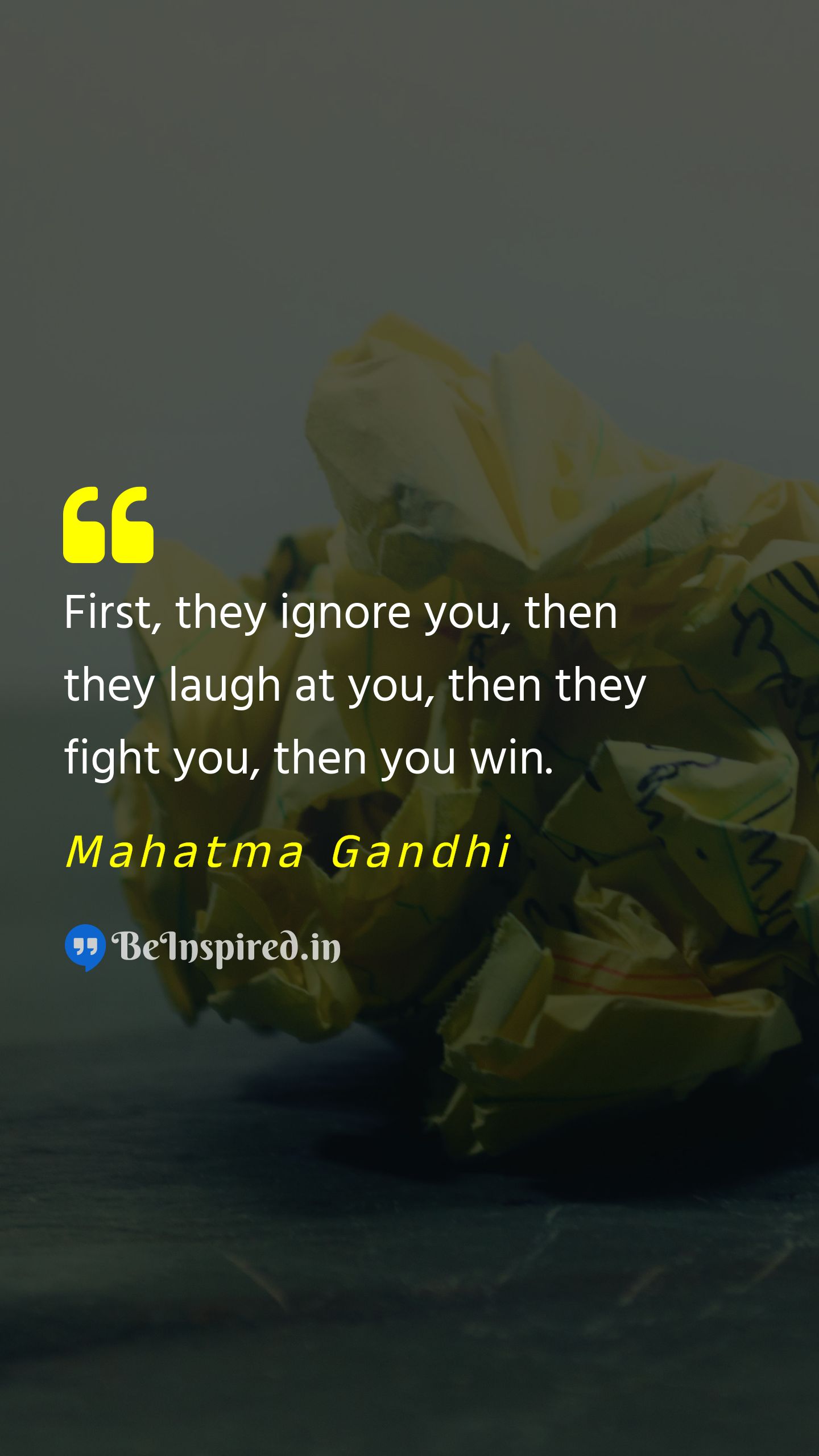 First, they ignore you, then they laugh at you, then they fight you, then you win.