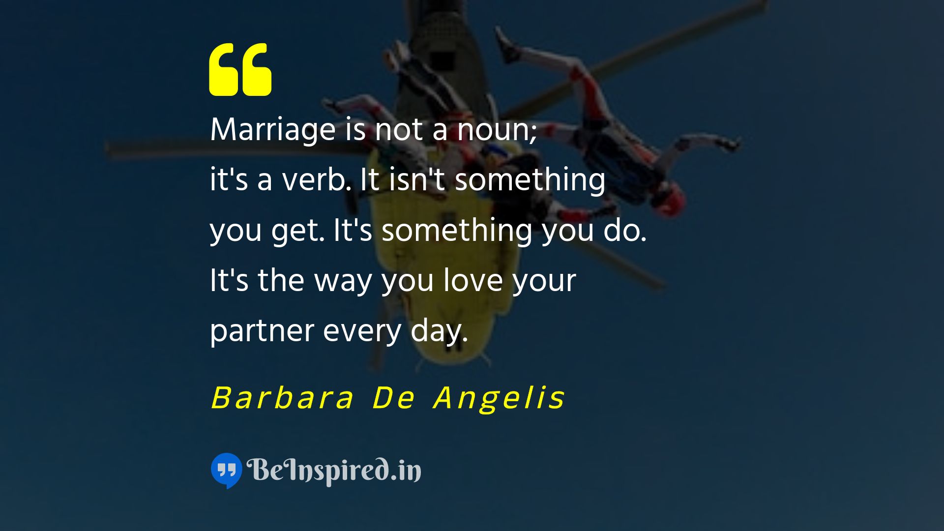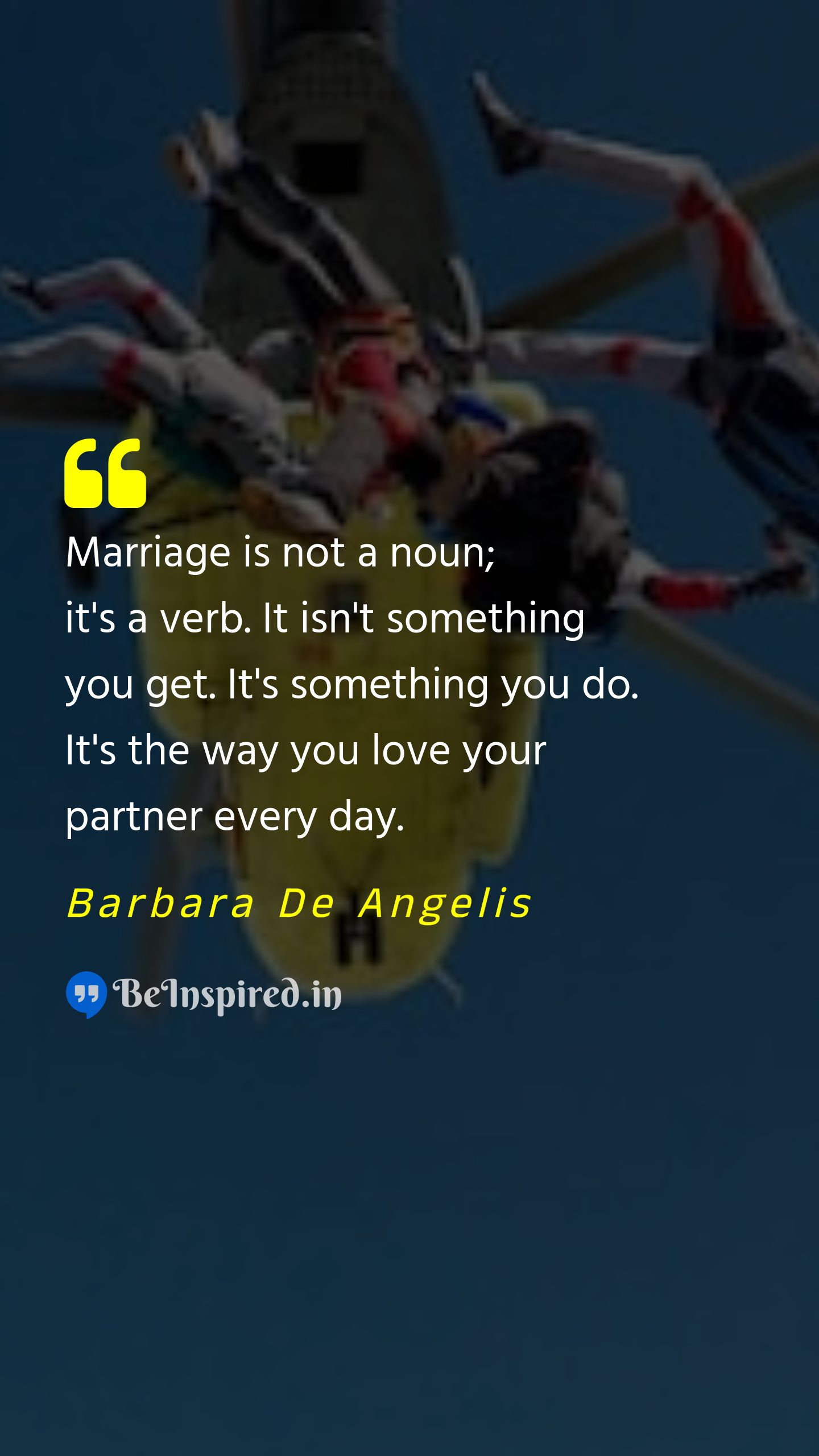 Marriage is not a noun; it's a verb. It isn't something you get. It's something you do. It's the way you love your partner every day.