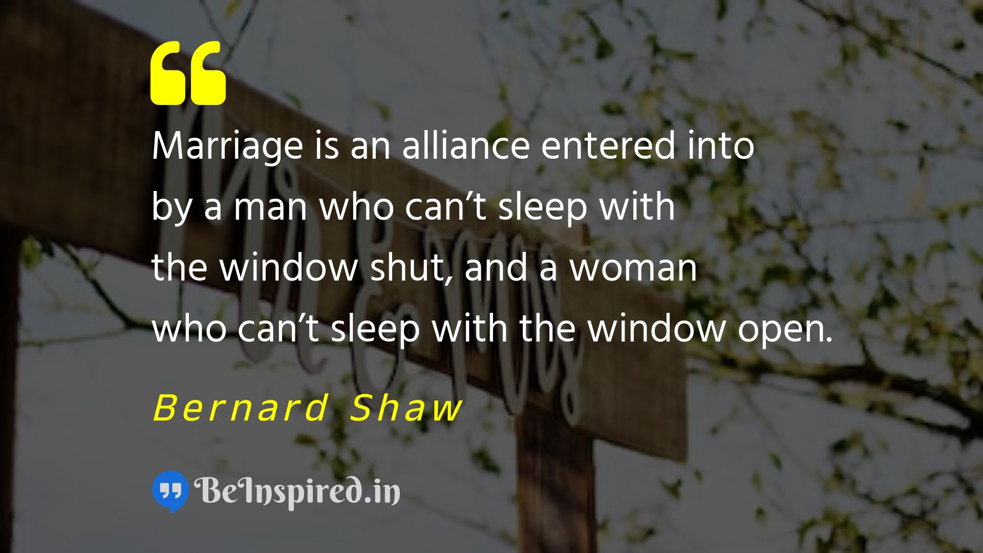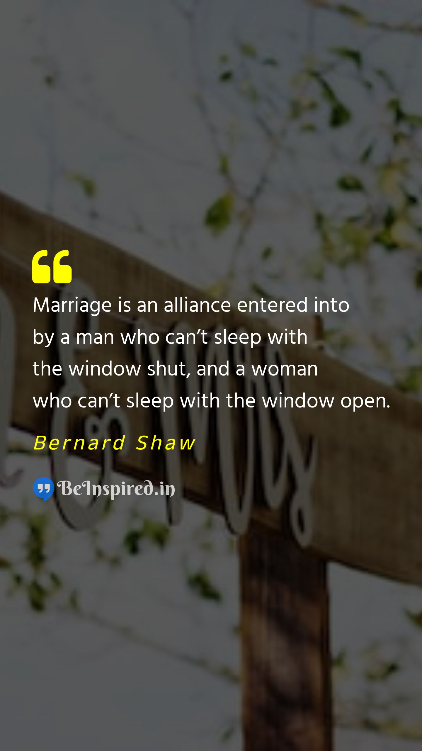 Marriage is an alliance entered into by a man who can’t sleep with the window shut, and a woman who can’t sleep with the window open.