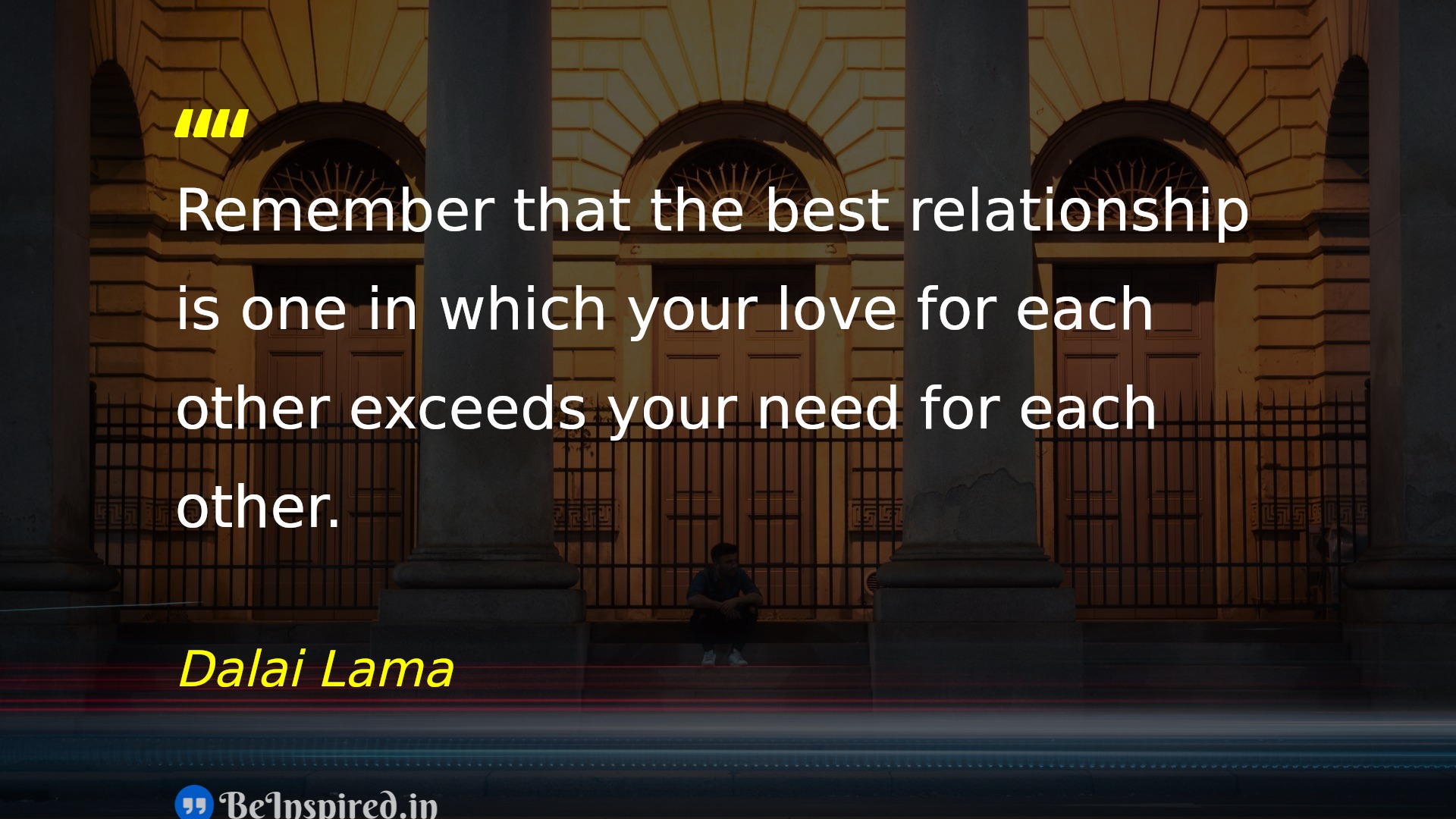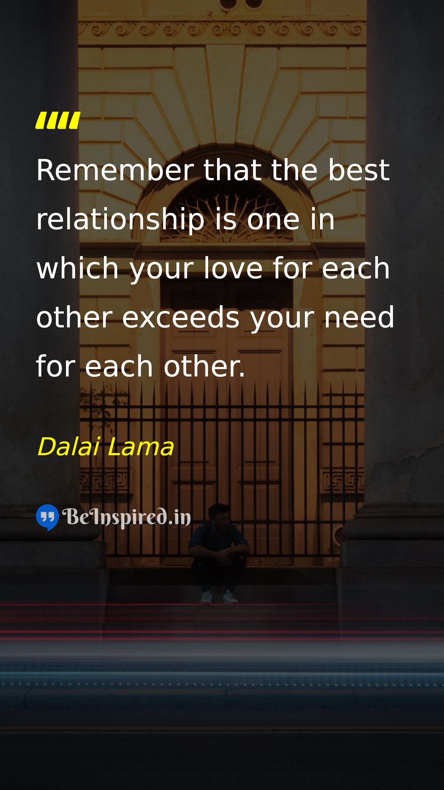 Remember that the best relationship is one in which your love for each other exceeds your need for each other.
