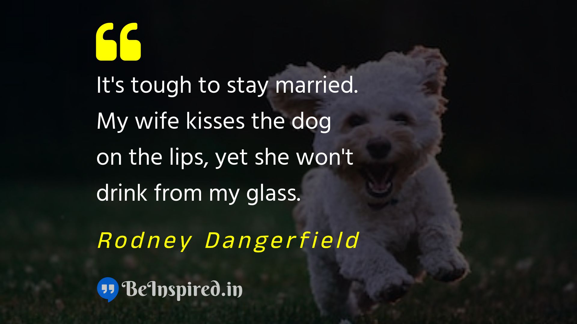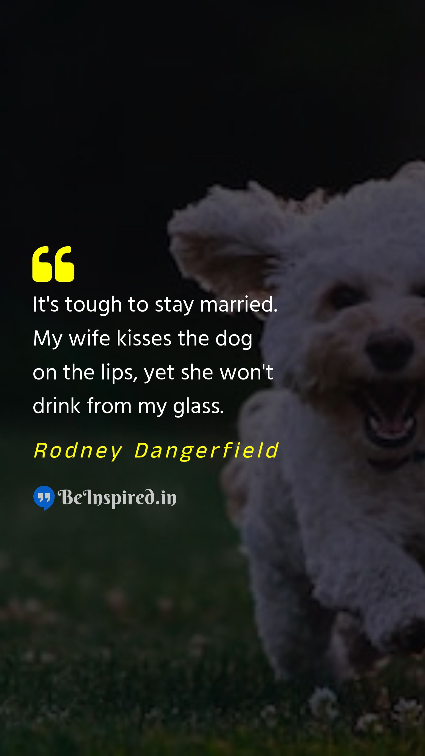 It's tough to stay married. My wife kisses the dog on the lips, yet she won't drink from my glass.