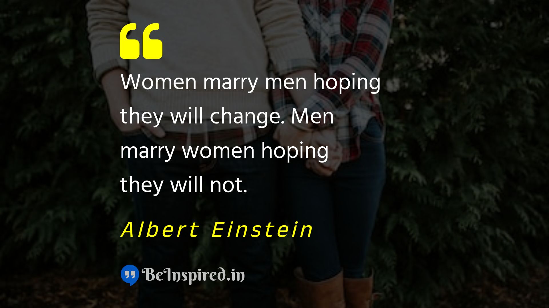 Women marry men hoping they will change. Men marry women hoping they will not.
