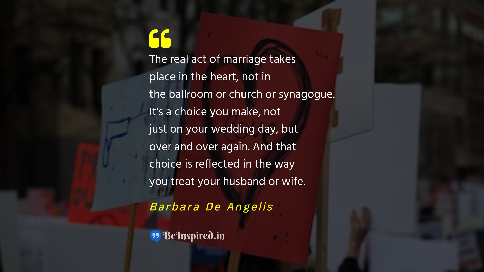 The real act of marriage takes place in the heart, not in the ballroom or church or synagogue. It's a choice you make, not just on your wedding day, but over and over again. And that choice is reflected in the way you treat your husband or wife.