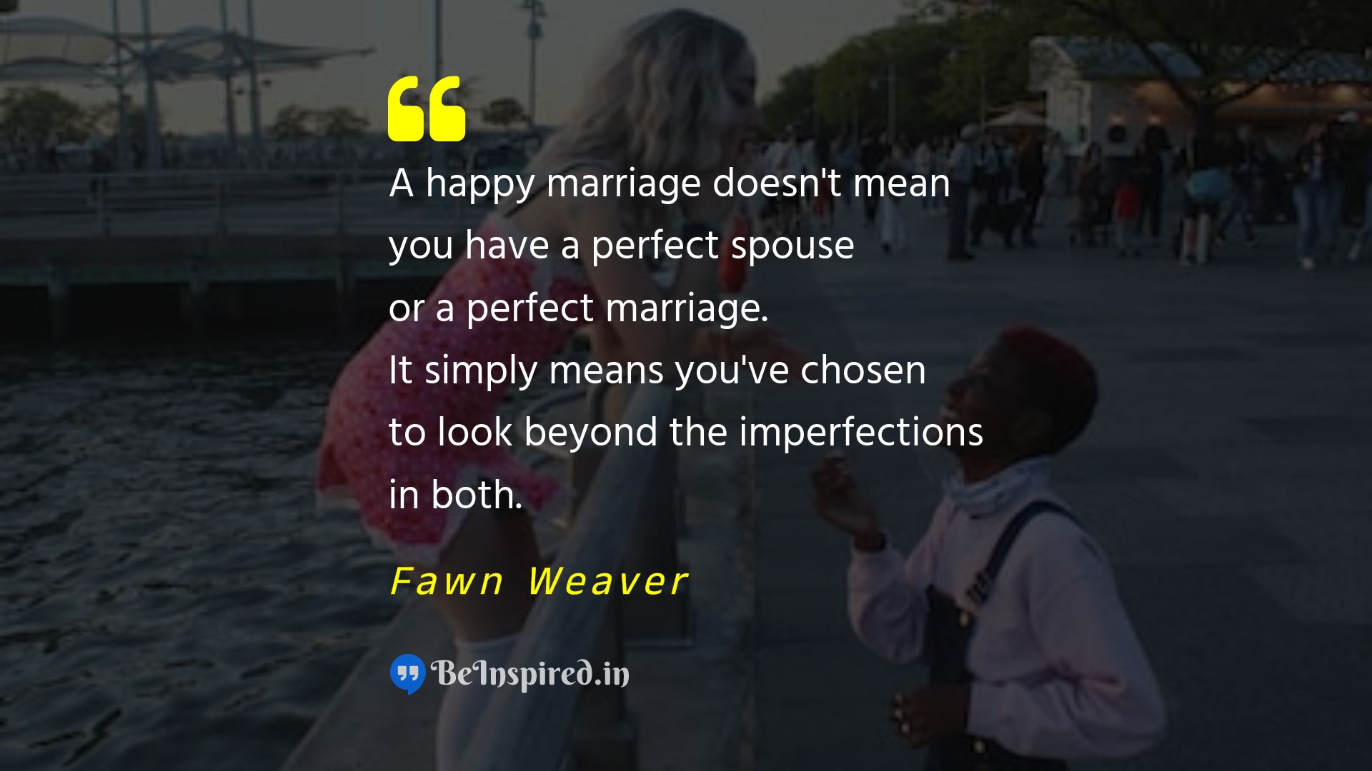 A happy marriage doesn't mean you have a perfect spouse or a perfect marriage. It simply means you've chosen to look beyond the imperfections in both.