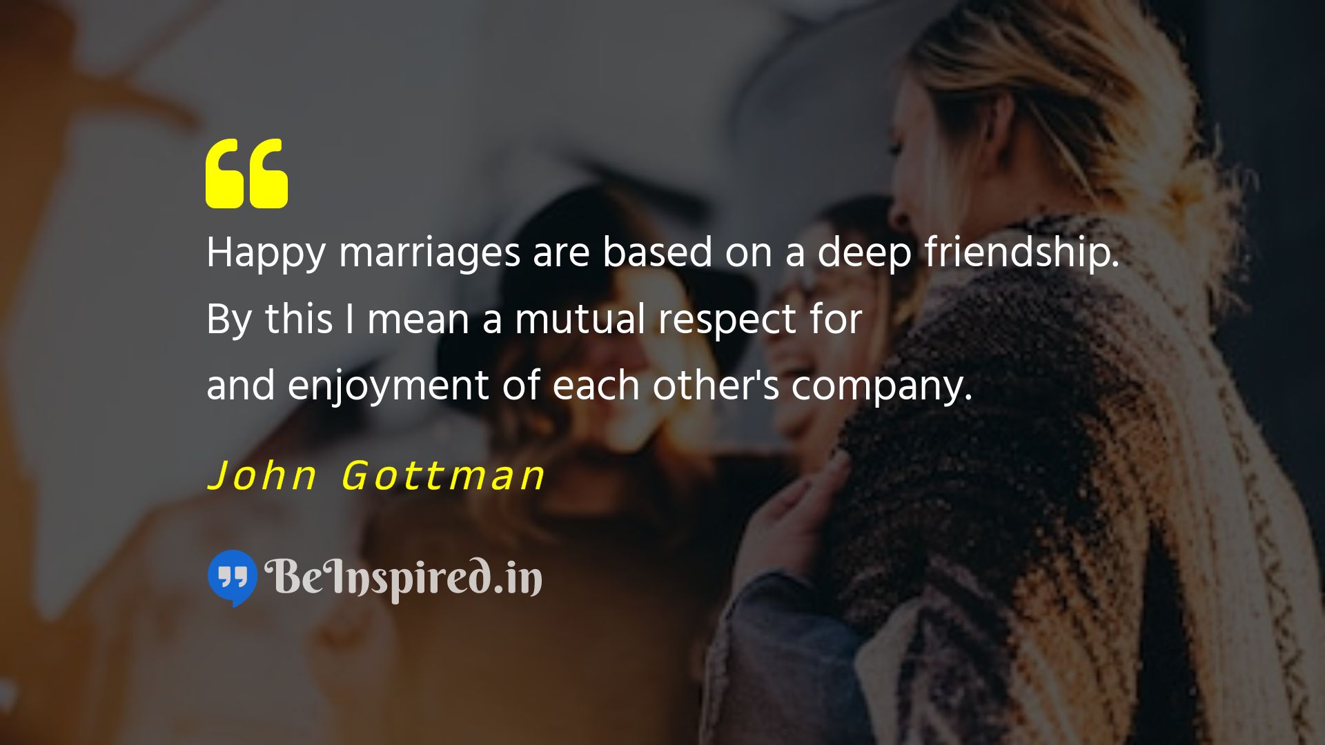 Happy marriages are based on a deep friendship. By this I mean a mutual respect for and enjoyment of each other's company.