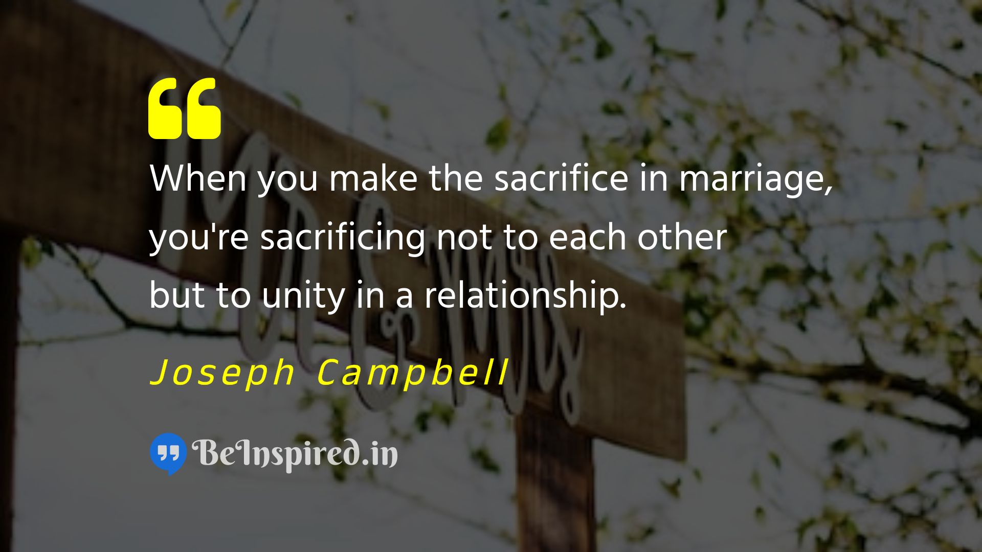 When you make the sacrifice in marriage, you're sacrificing not to each other but to unity in a relationship.