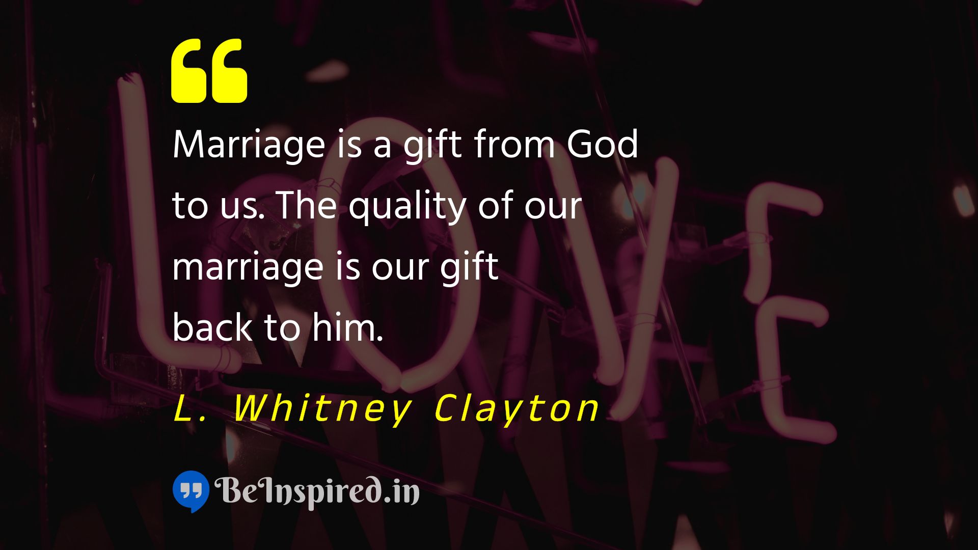 Marriage is a gift from God to us. The quality of our marriage is our gift back to him.