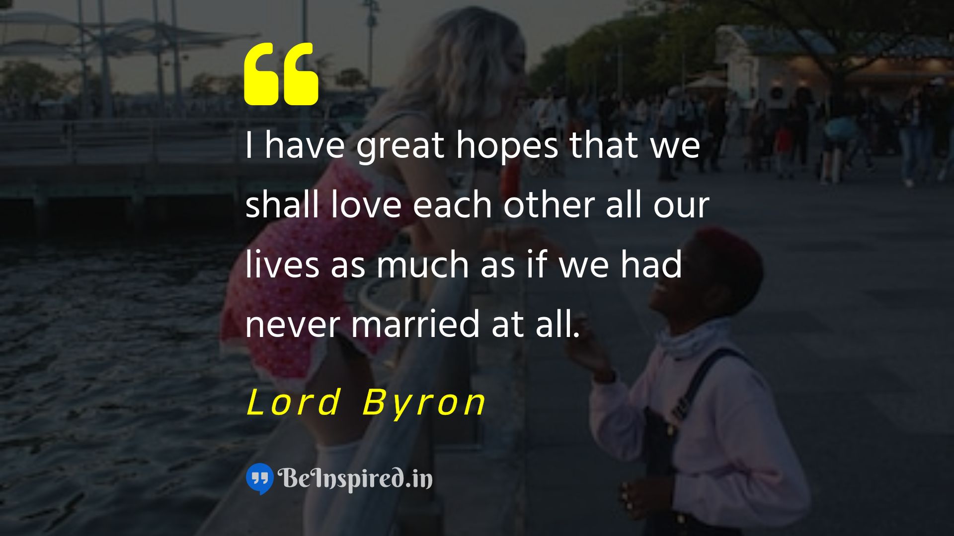 I have great hopes that we shall love each other all our lives as much as if we had never married at all.