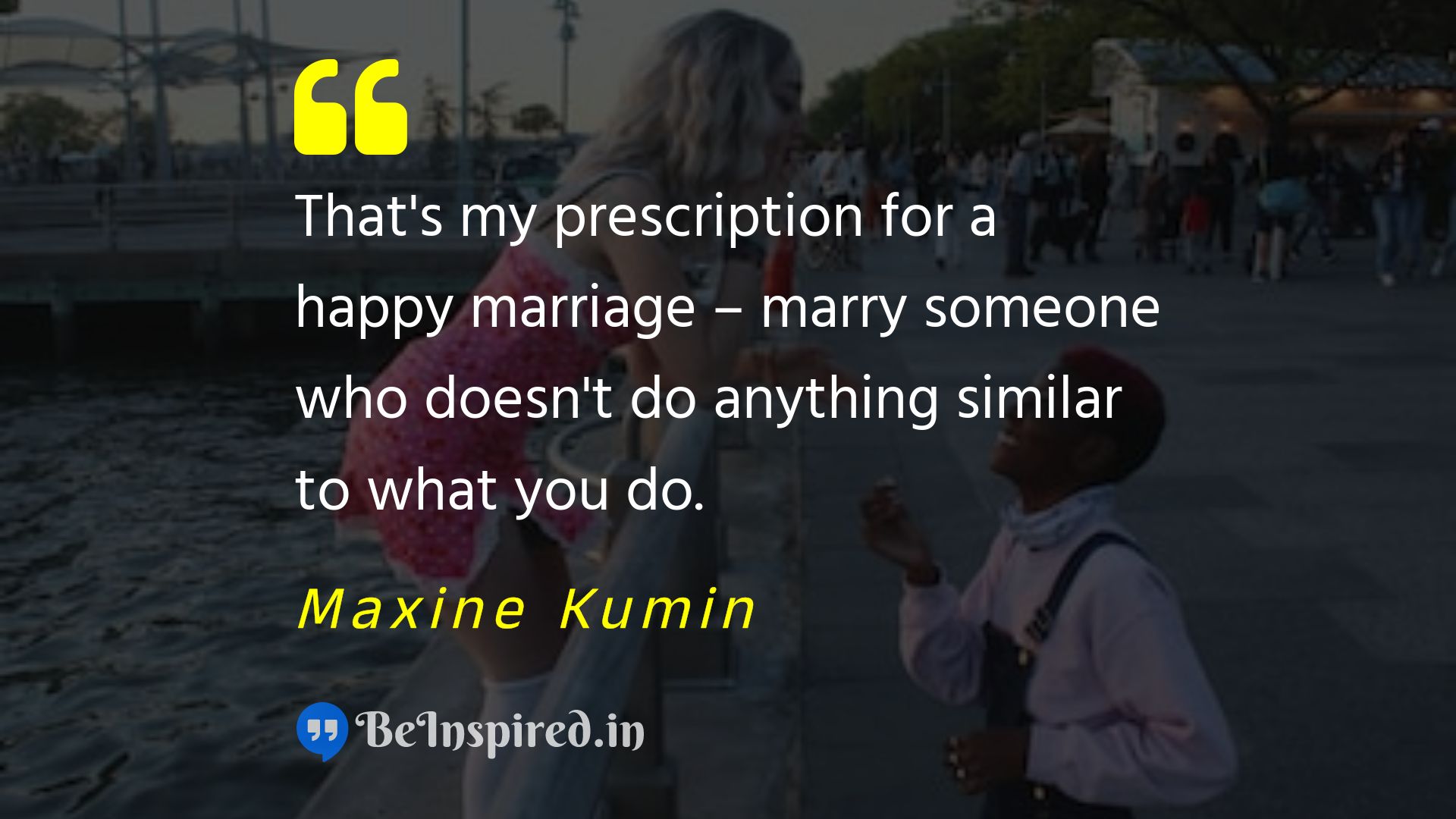 That's my prescription for a happy marriage – marry someone who doesn't do anything similar to what you do.
