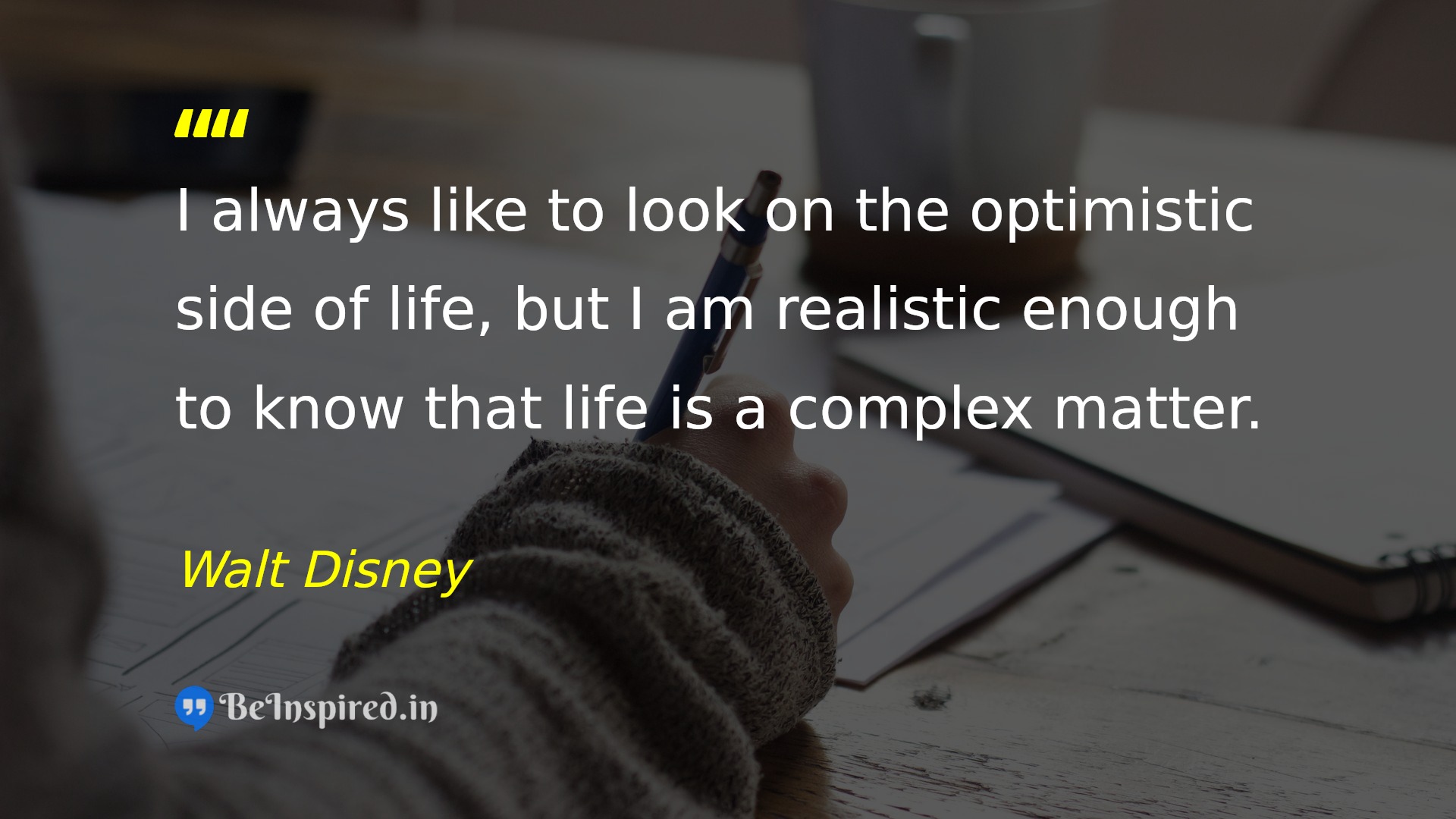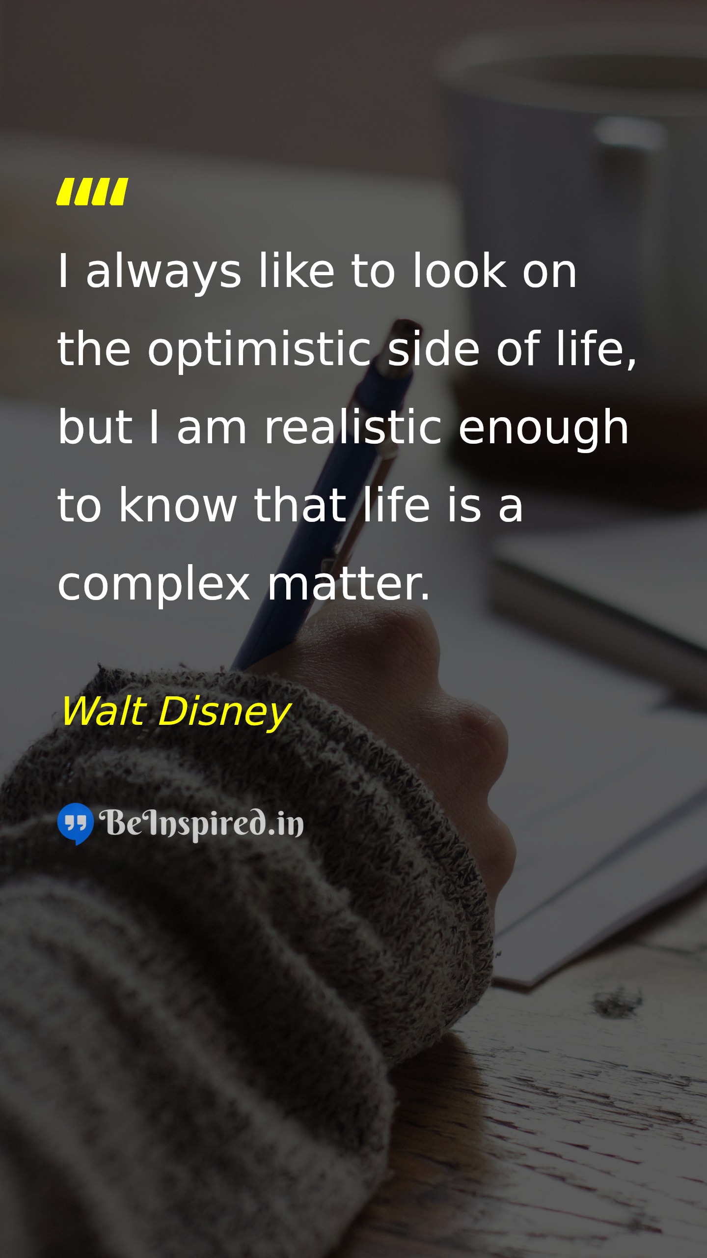 I always like to look on the optimistic side of life, but I am realistic enough to know that life is a complex matter.