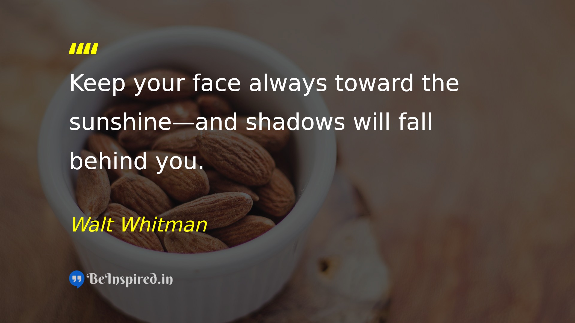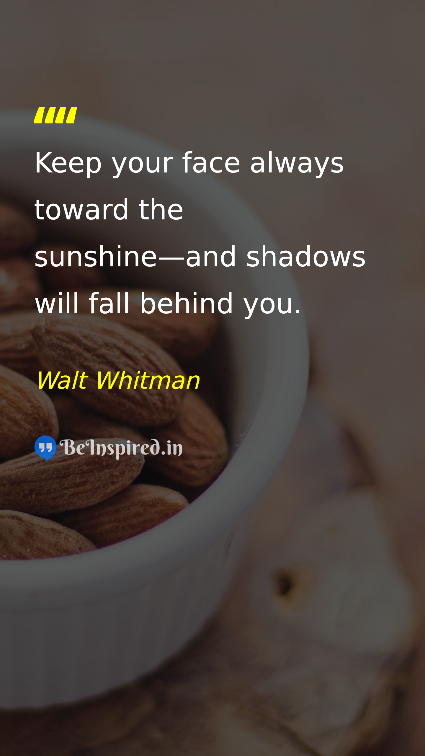 Keep your face always toward the sunshine—and shadows will fall behind you.