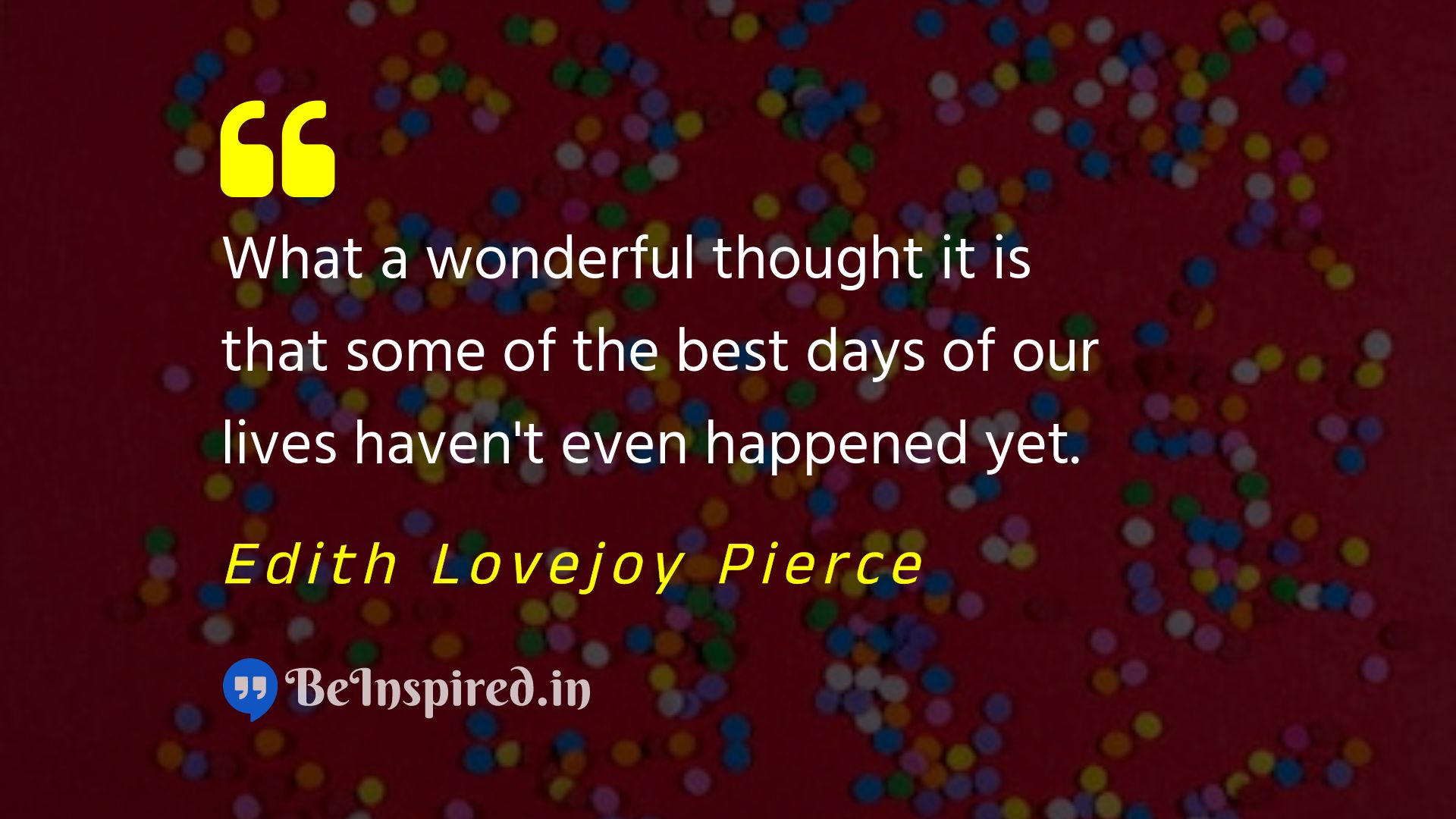 What a wonderful thought it is that some of the best days of our lives haven't even happened yet.