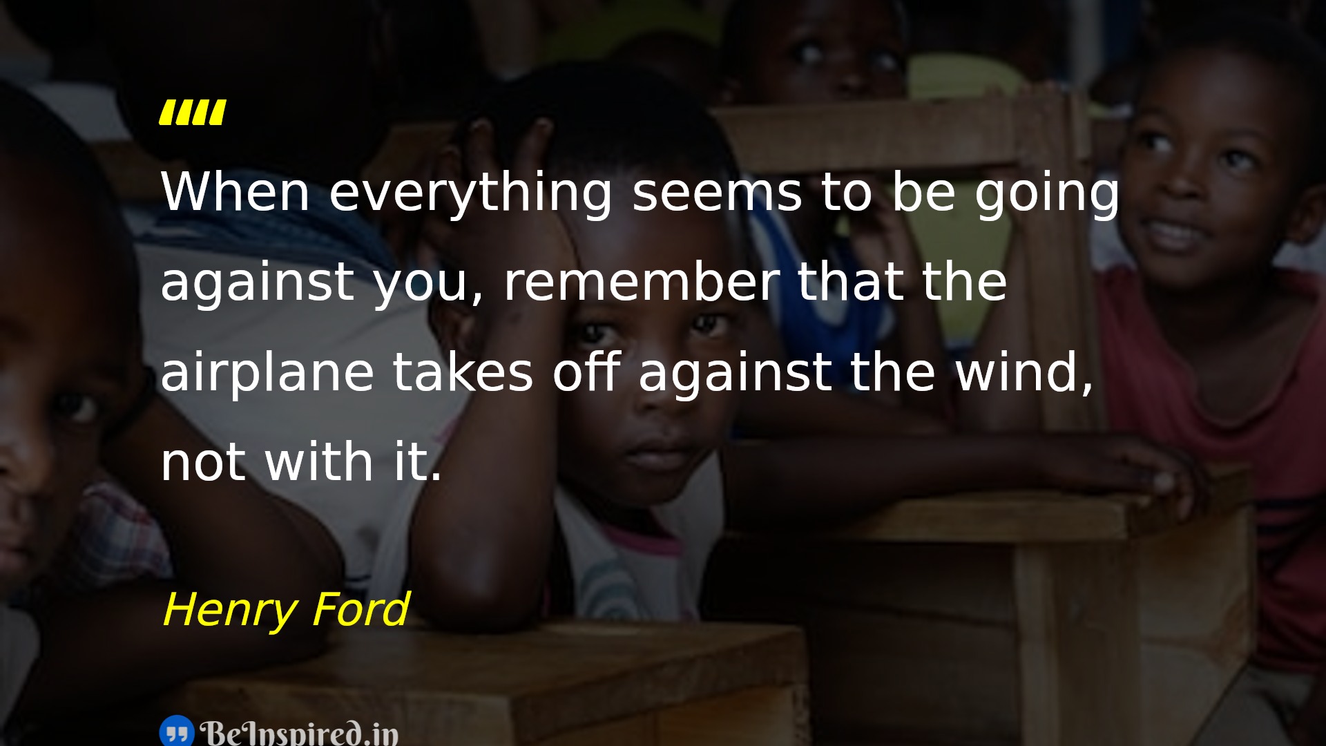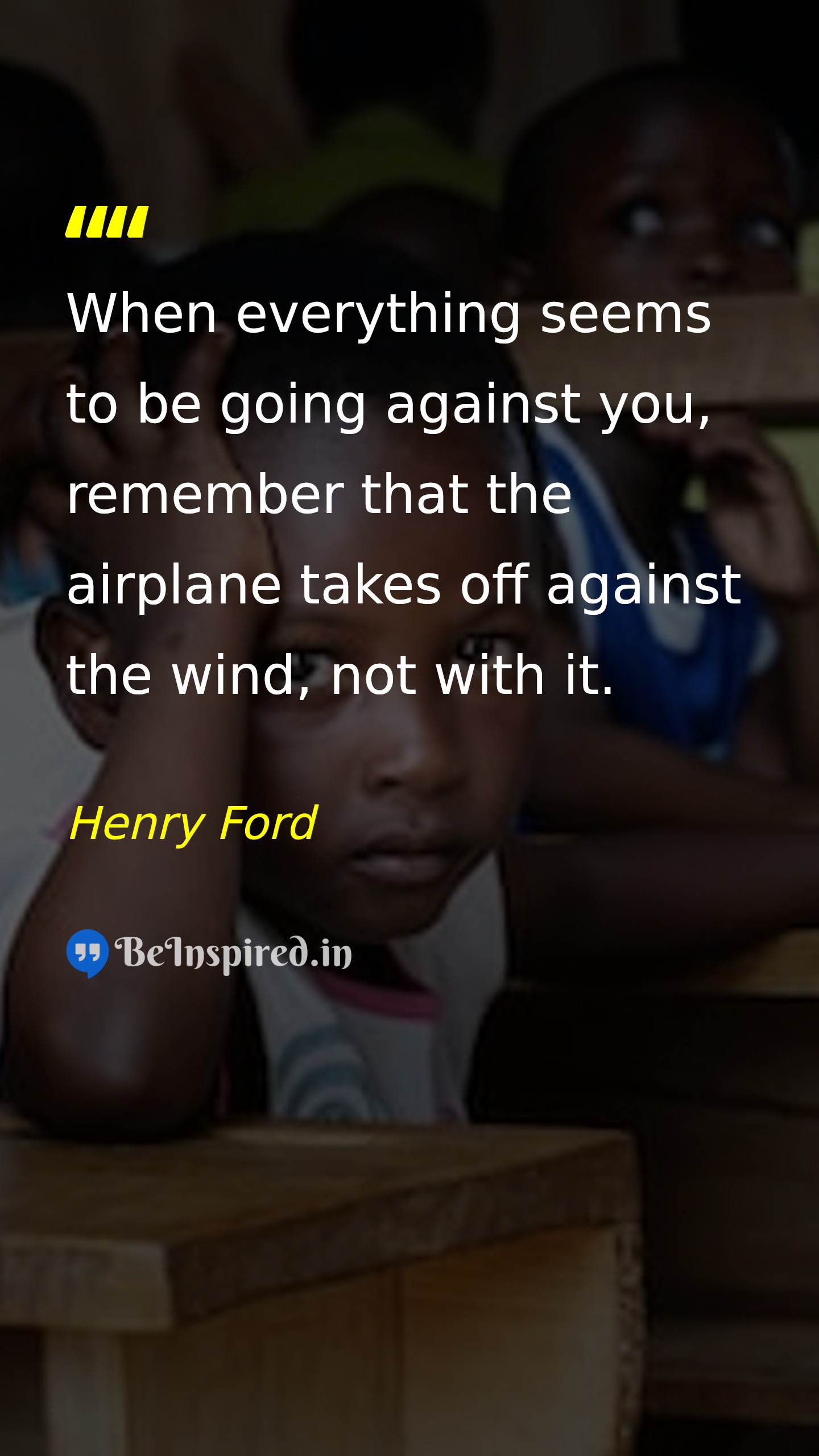 When everything seems to be going against you, remember that the airplane takes off against the wind, not with it.