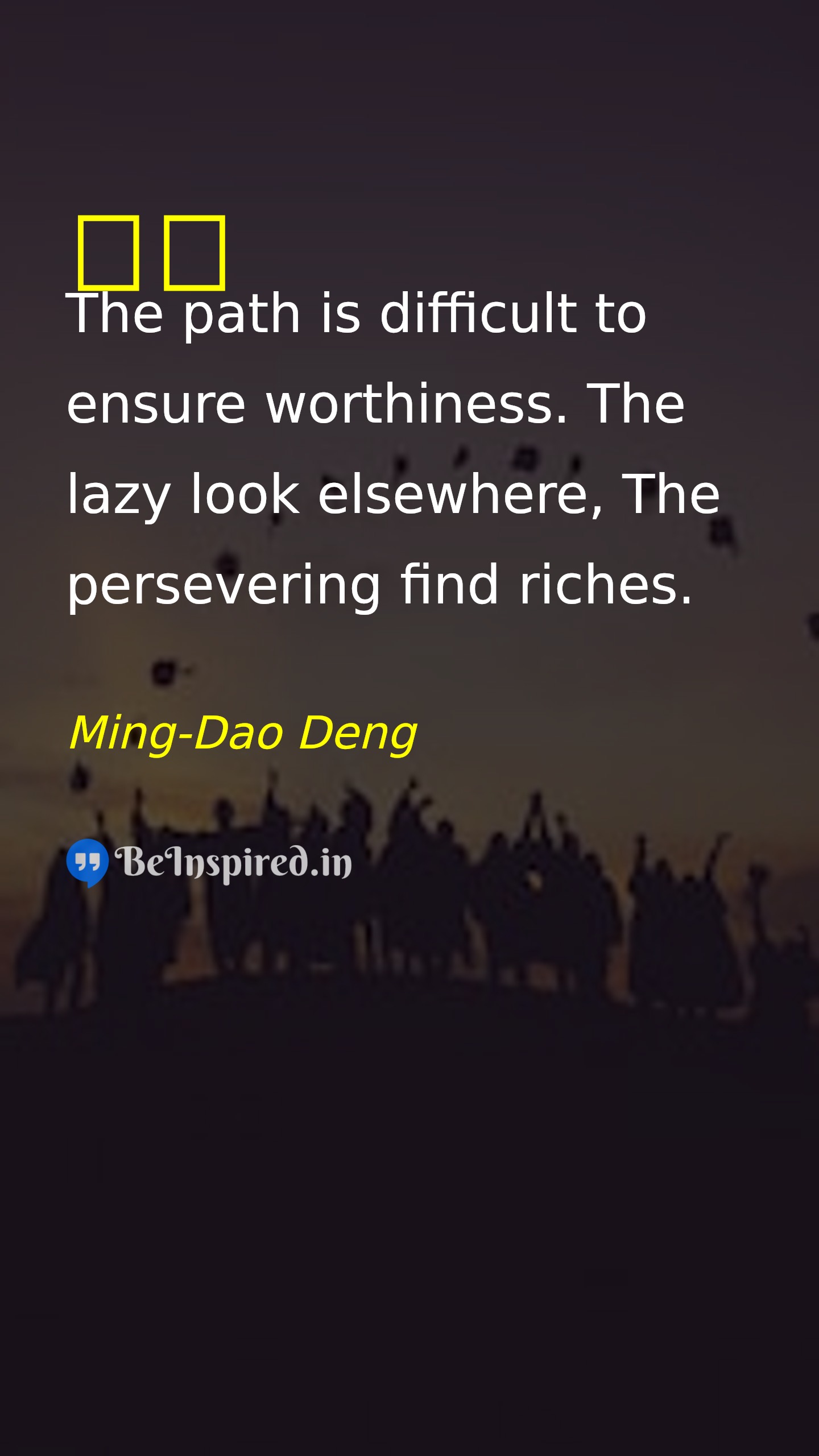 The path is difficult to ensure worthiness. The lazy look elsewhere, The persevering find riches.