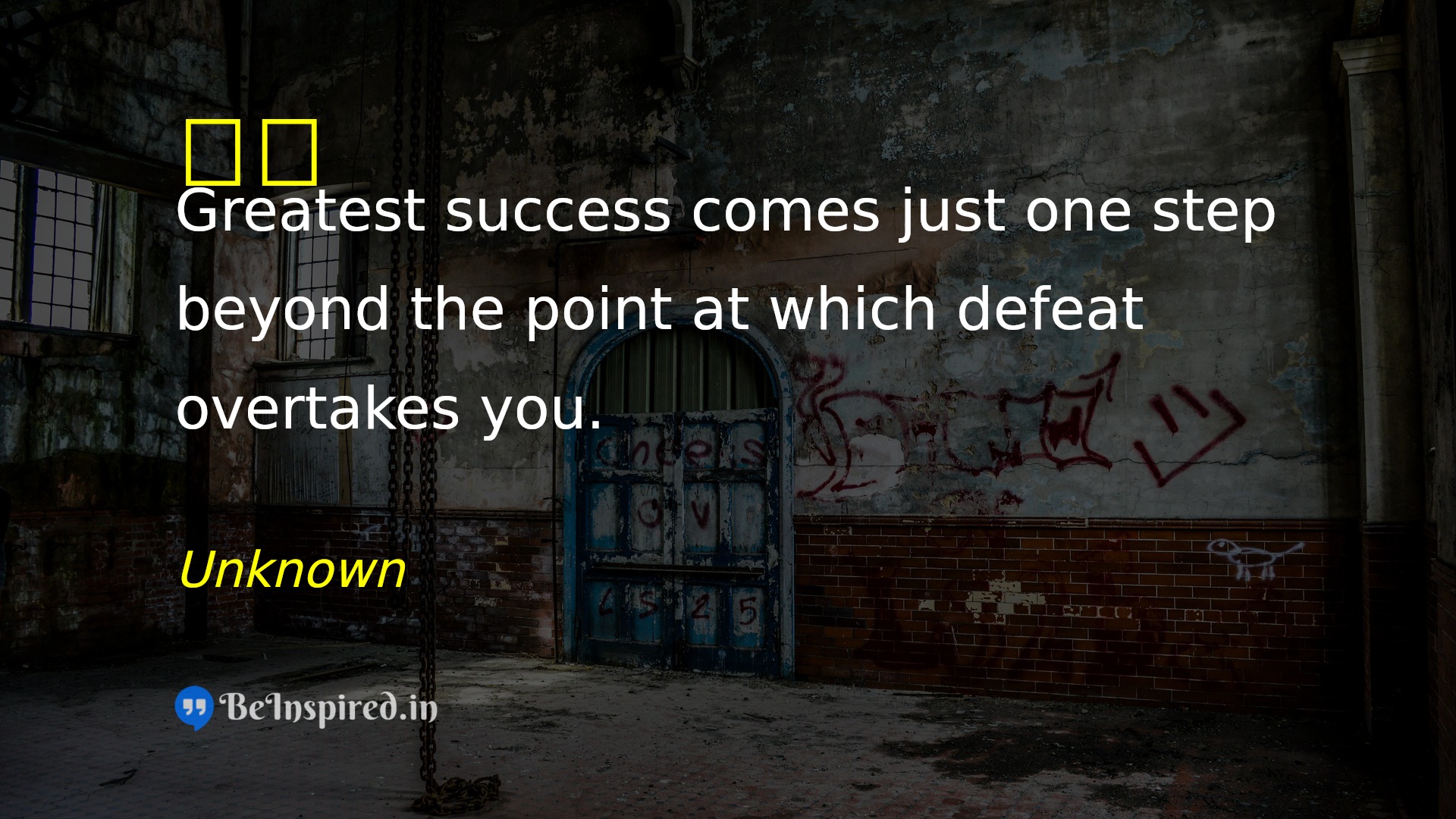 Greatest success comes just one step beyond the point at which defeat overtakes you.