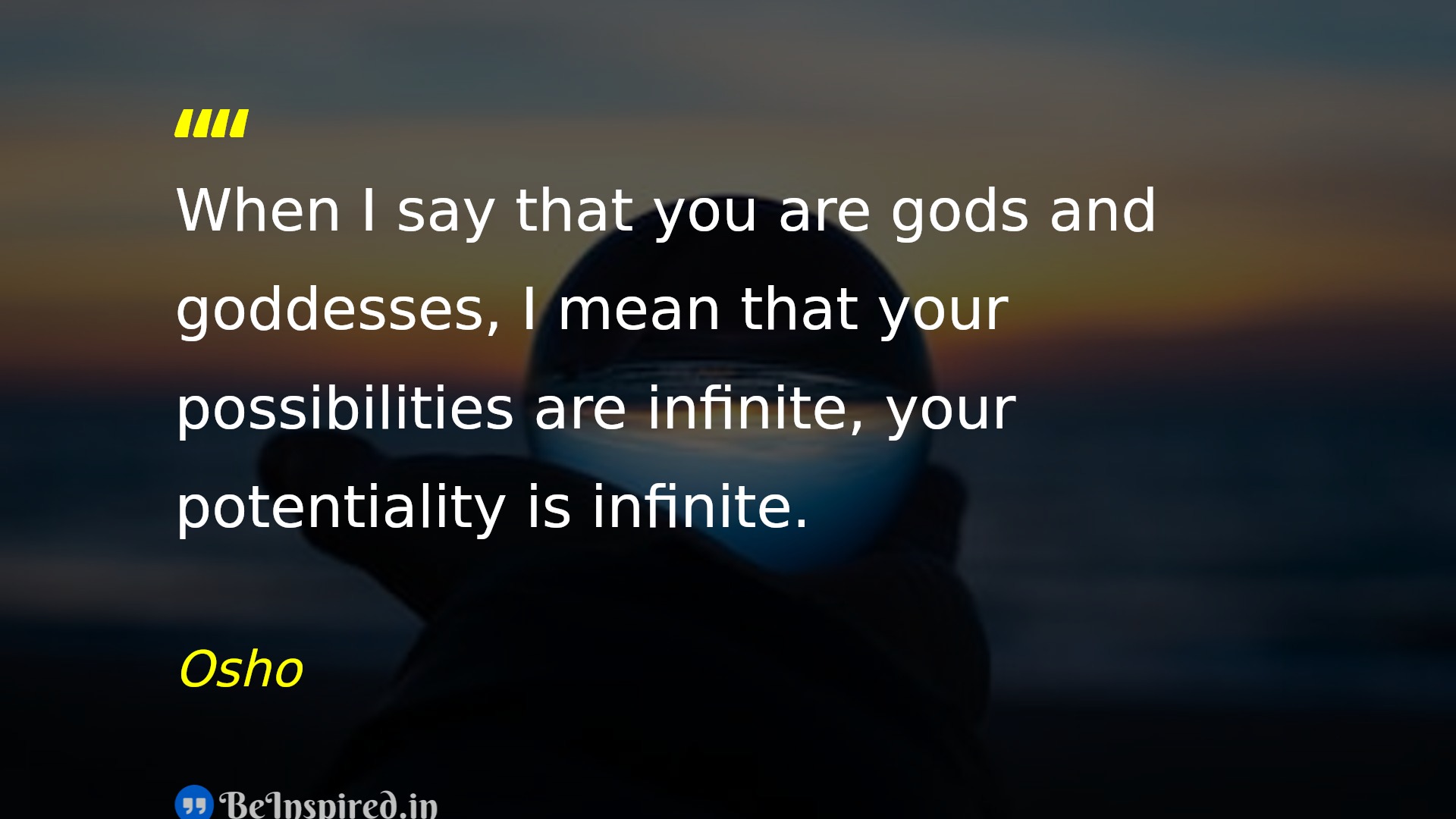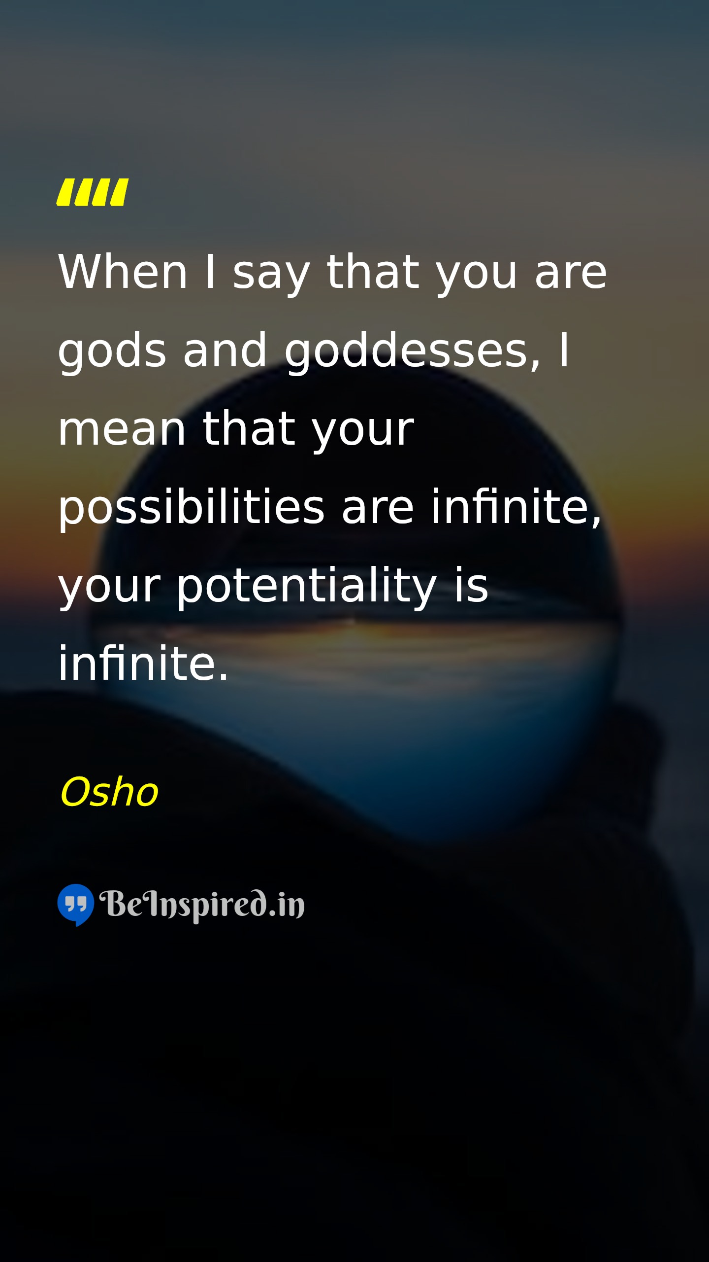 When I say that you are gods and goddesses, I mean that your possibilities are infinite, your potentiality is infinite.