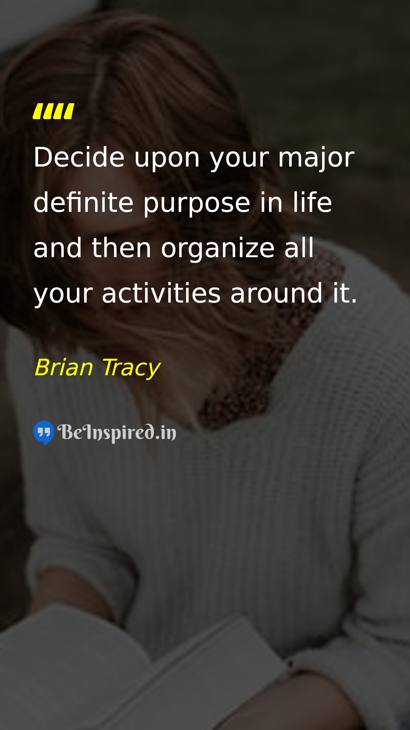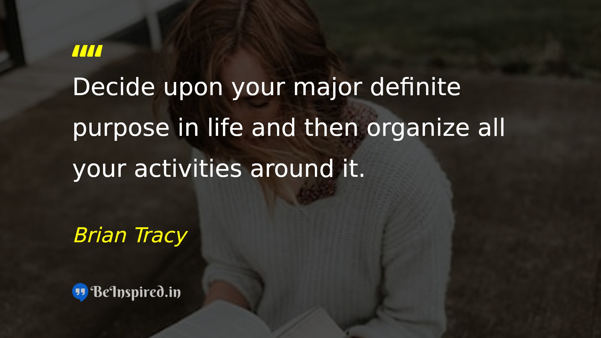 Decide upon your major definite purpose in life and then organize all your activities around it.