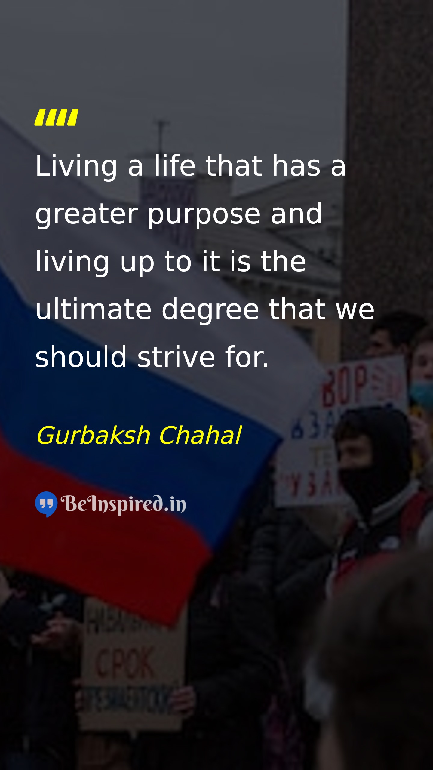 Living a life that has a greater purpose and living up to it is the ultimate degree that we should strive for.