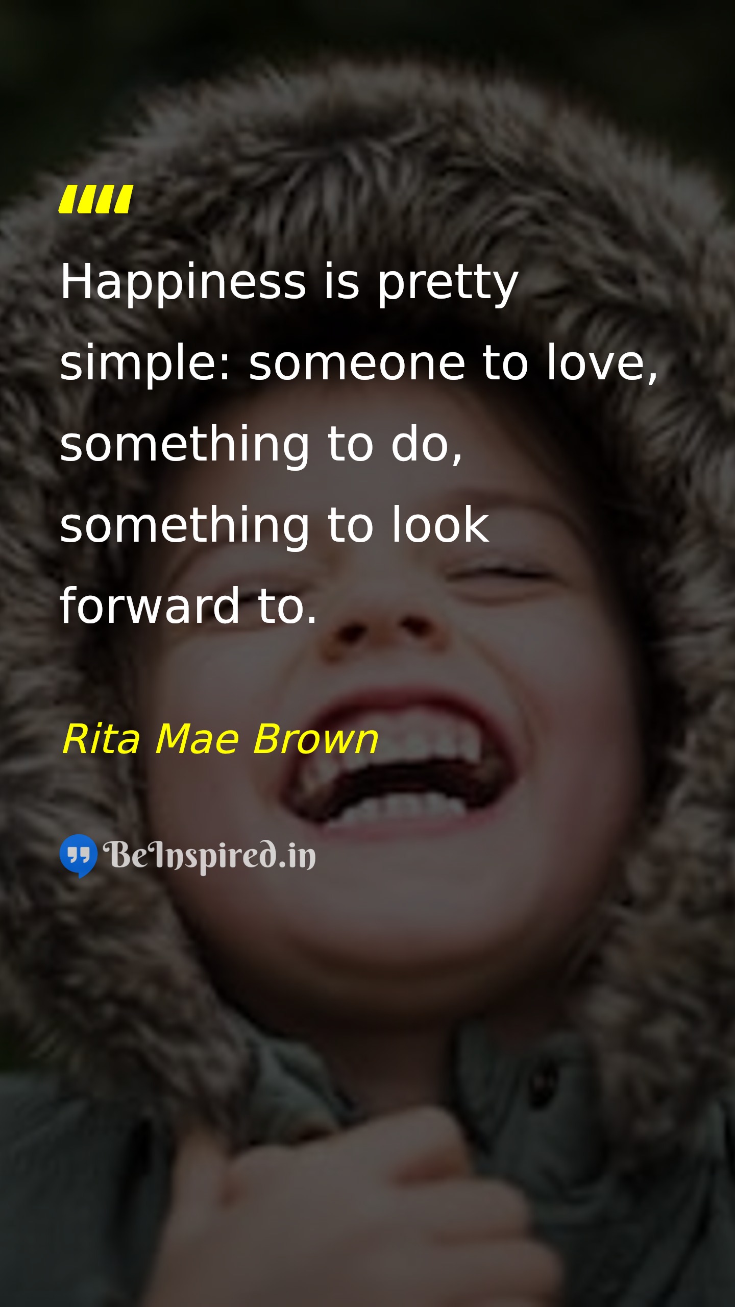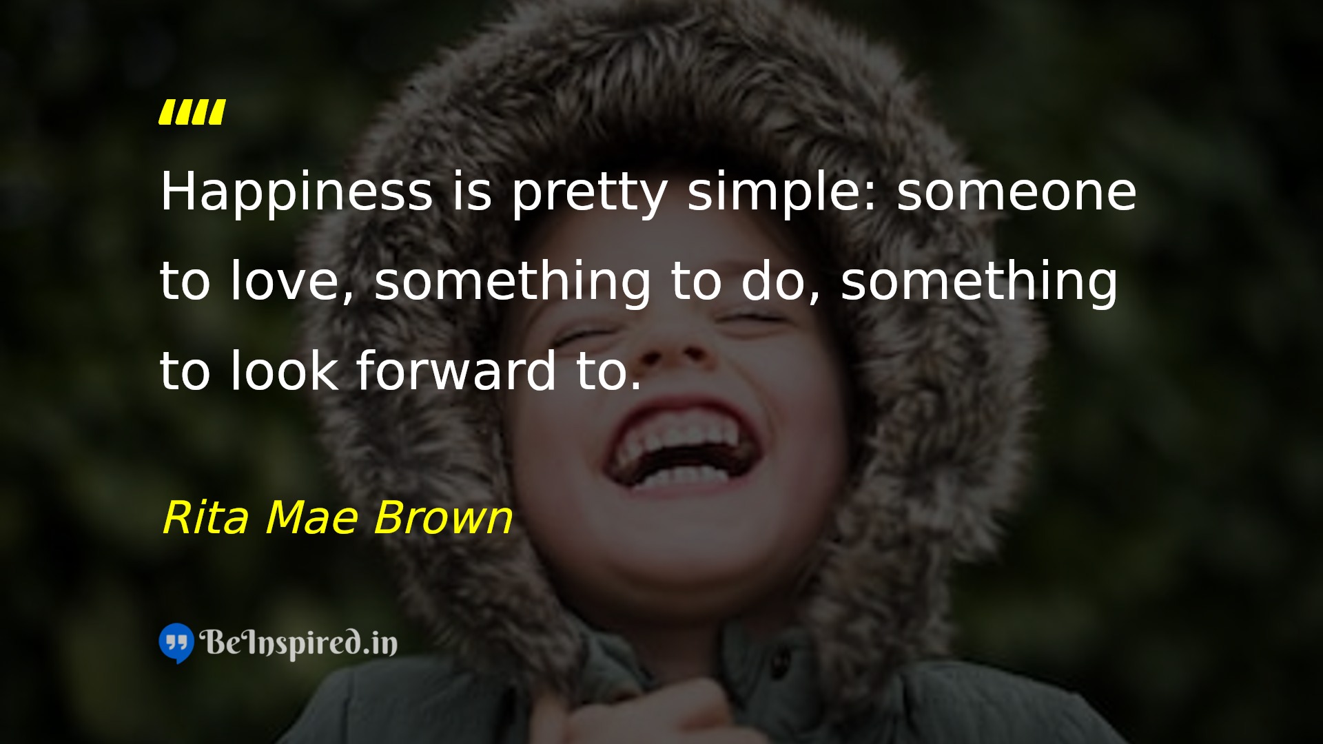 Happiness is pretty simple: someone to love, something to do, something to look forward to.