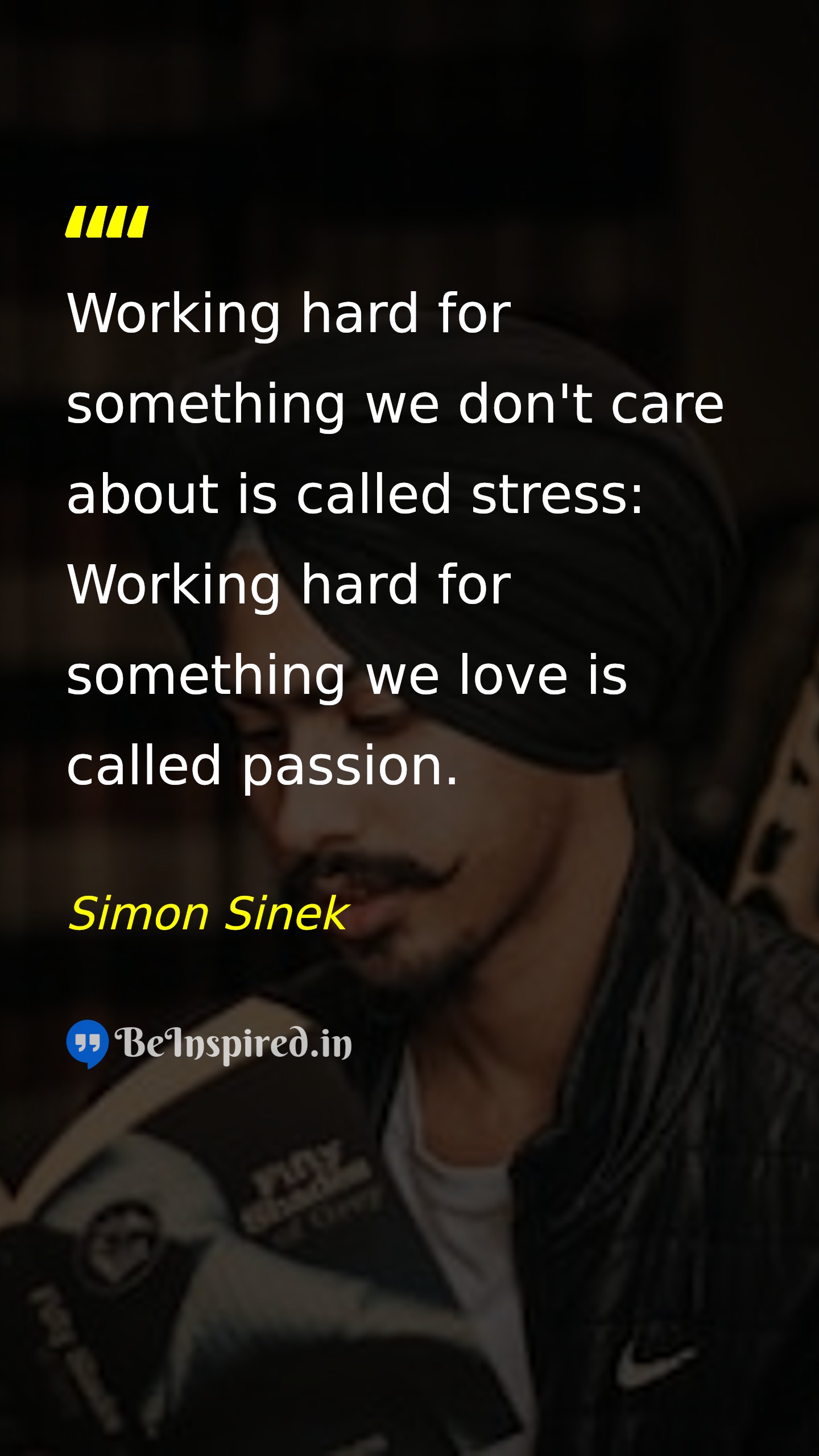 Working hard for something we don't care about is called stress: Working hard for something we love is called passion.