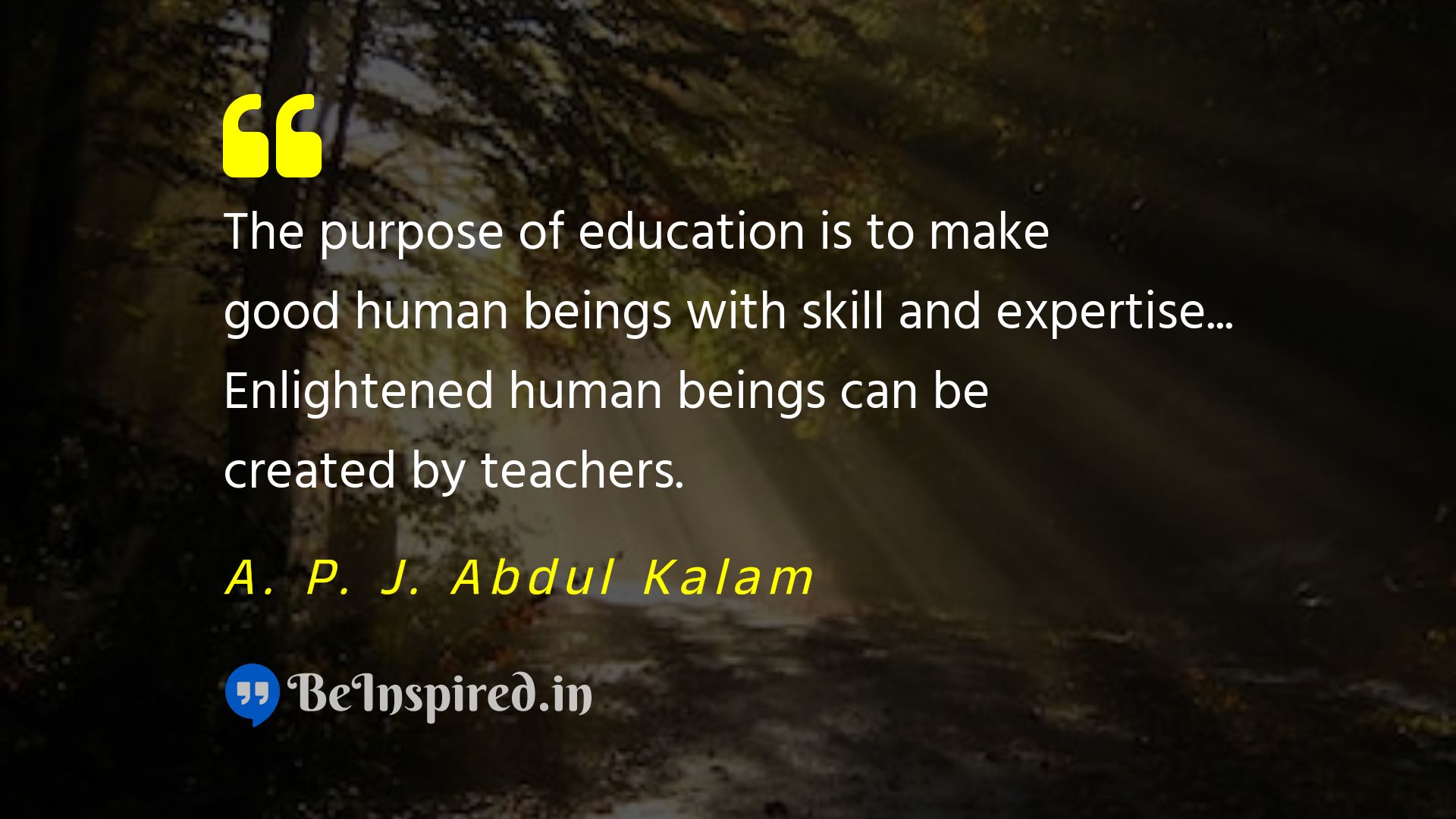 The purpose of education is to make good human beings with skill and expertise... Enlightened human beings can be created by teachers.