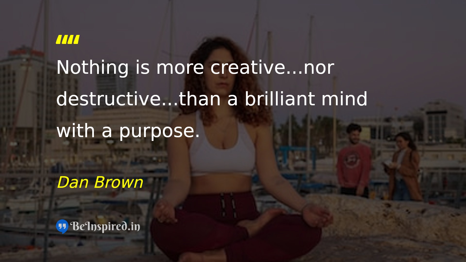 Nothing is more creative...nor destructive...than a brilliant mind with a purpose.