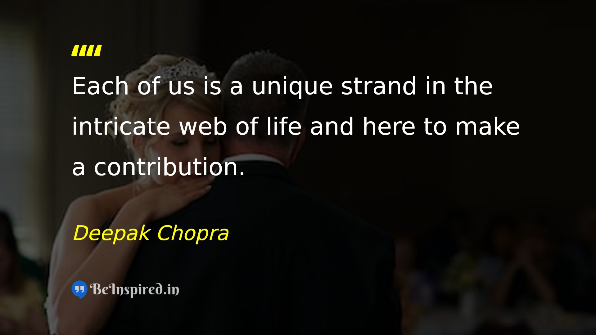Each of us is a unique strand in the intricate web of life and here to make a contribution.