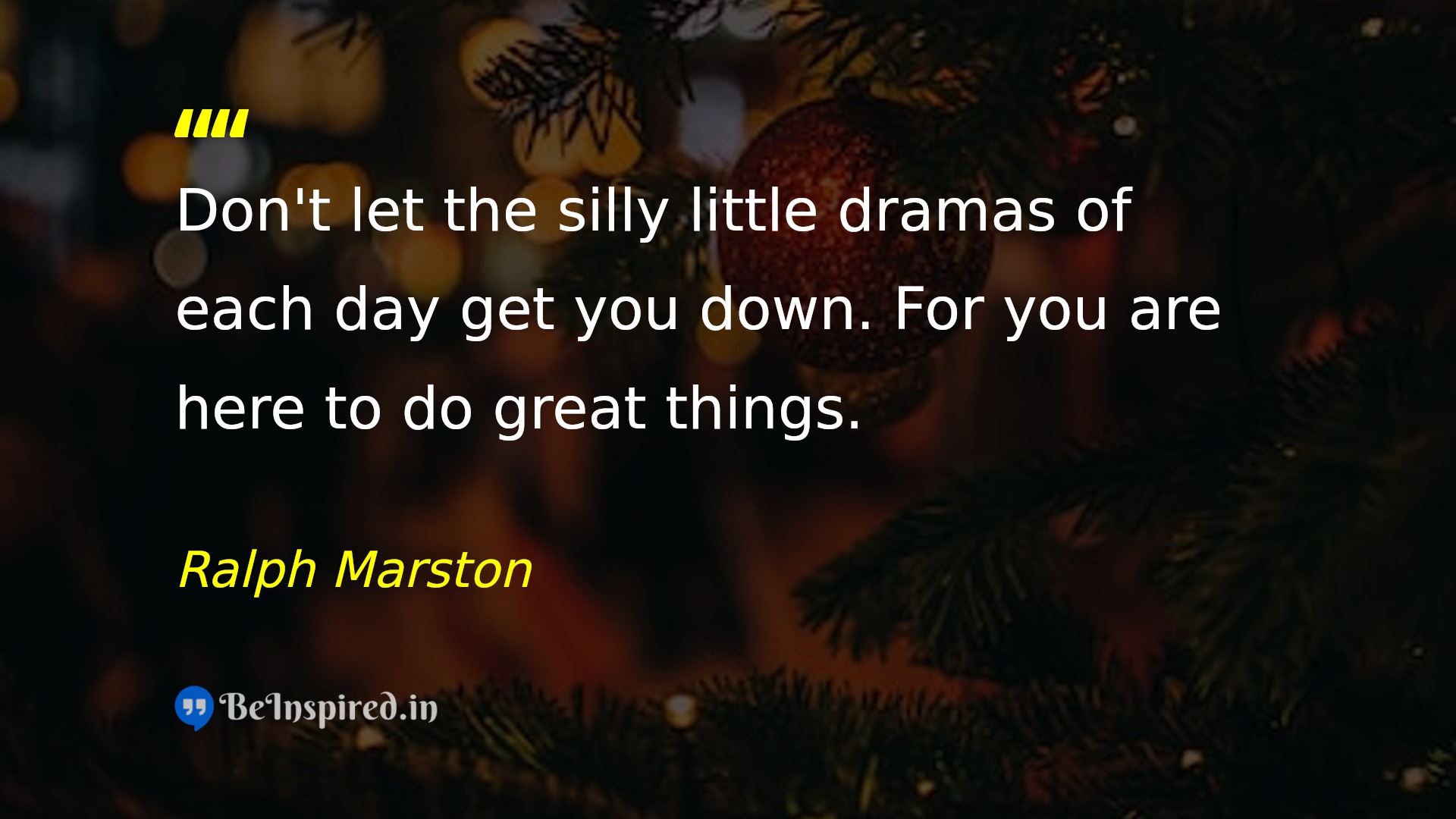 Don't let the silly little dramas of each day get you down. For you are here to do great things.