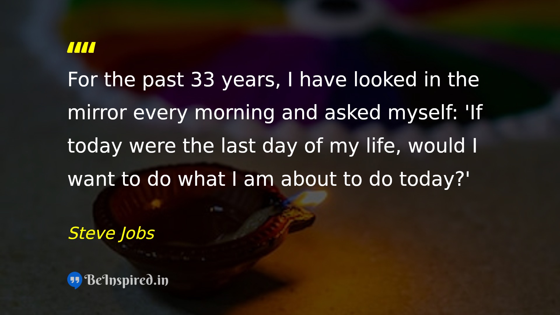 For the past 33 years, I have looked in the mirror every morning and asked myself: 'If today were the last day of my life, would I want to do what I am about to do today?'