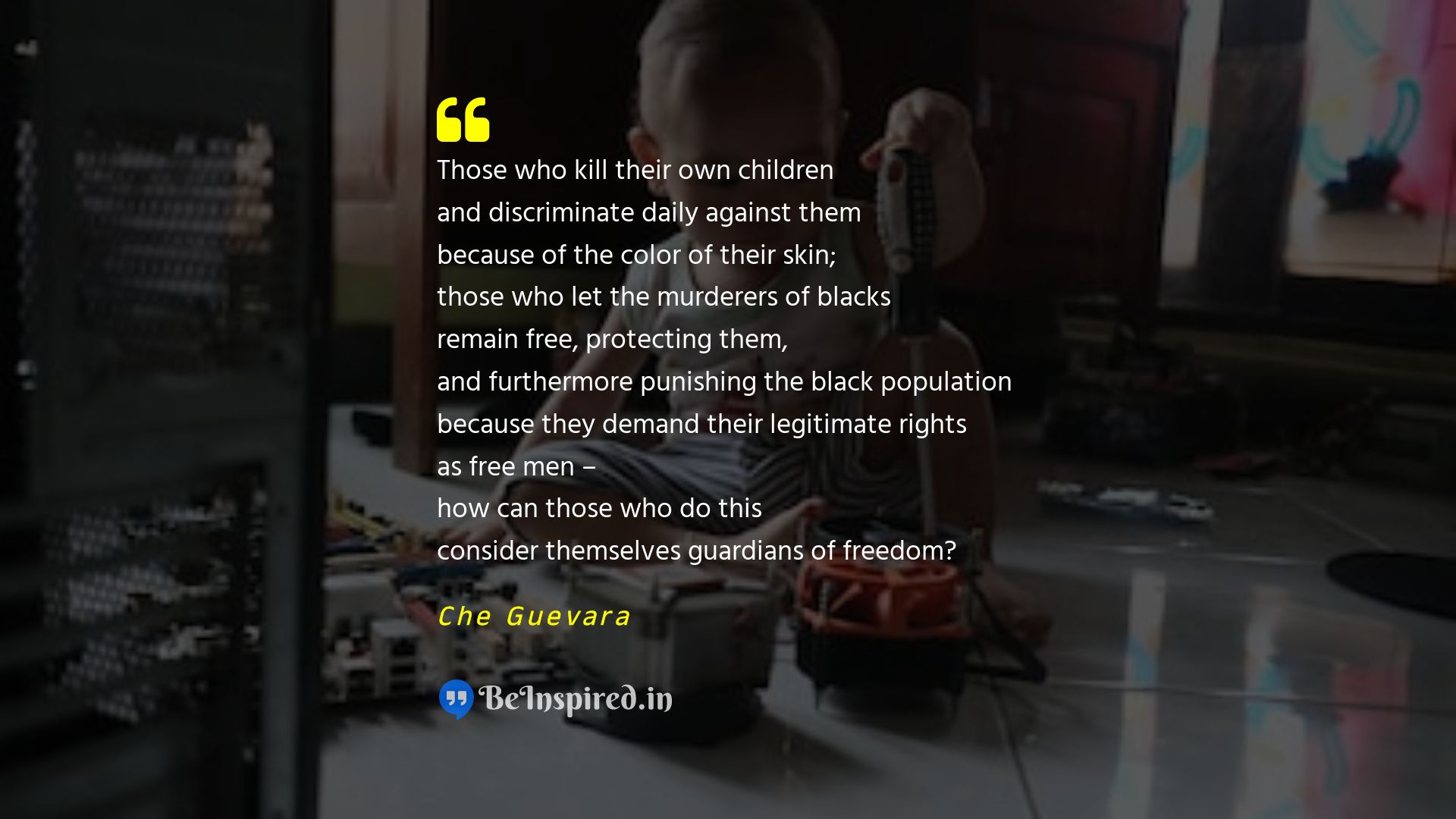 Those who kill their own children and discriminate daily against them because of the color of their skin; those who let the murderers of blacks remain free, protecting them, and furthermore punishing the black population because they demand their legitimate rights as free men – how can those who do this consider themselves guardians of freedom?