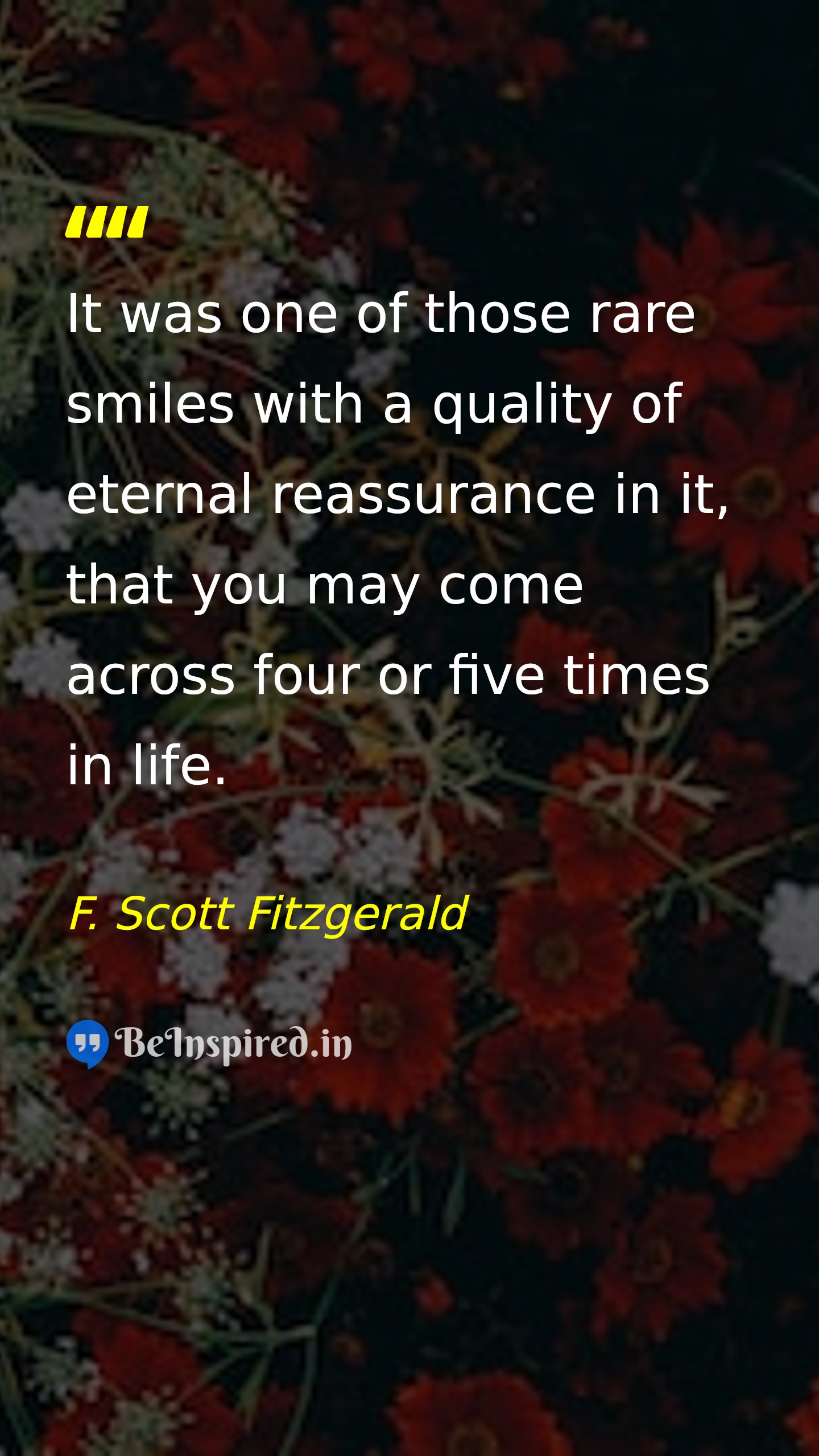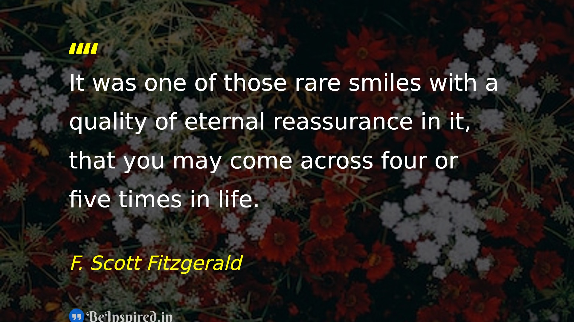 It was one of those rare smiles with a quality of eternal reassurance in it, that you may come across four or five times in life.