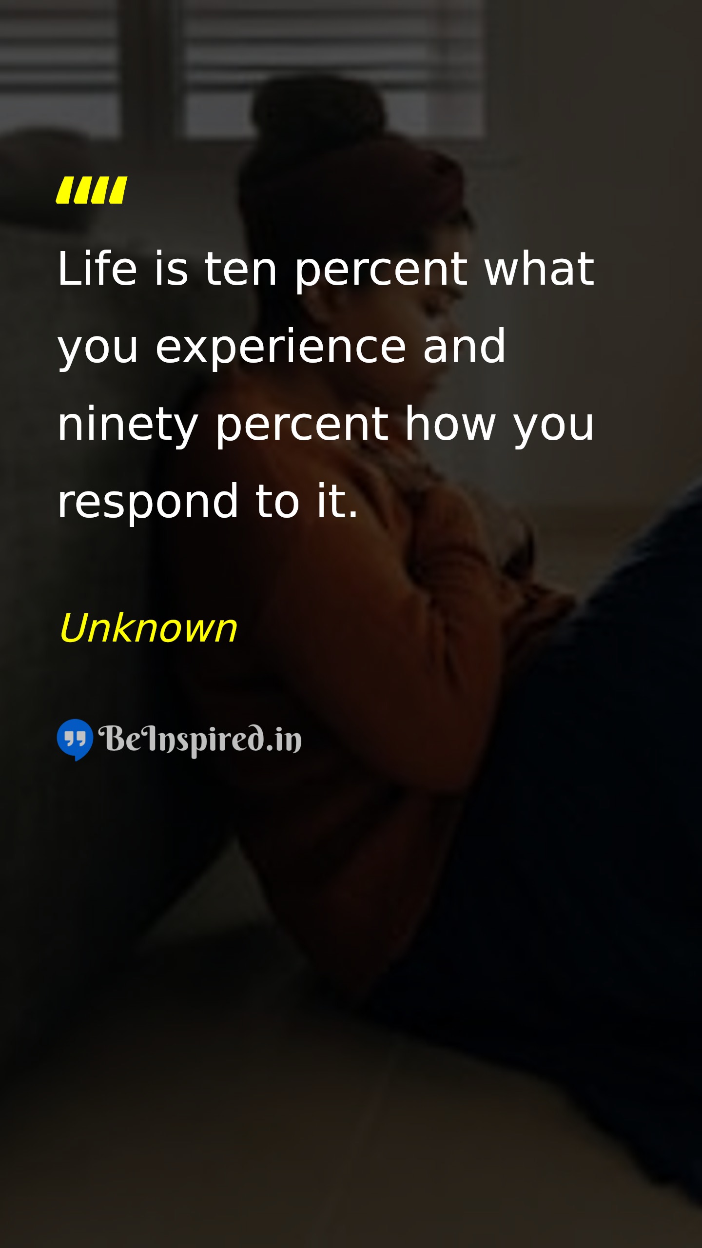Life is ten percent what you experience and ninety percent how you respond to it.
