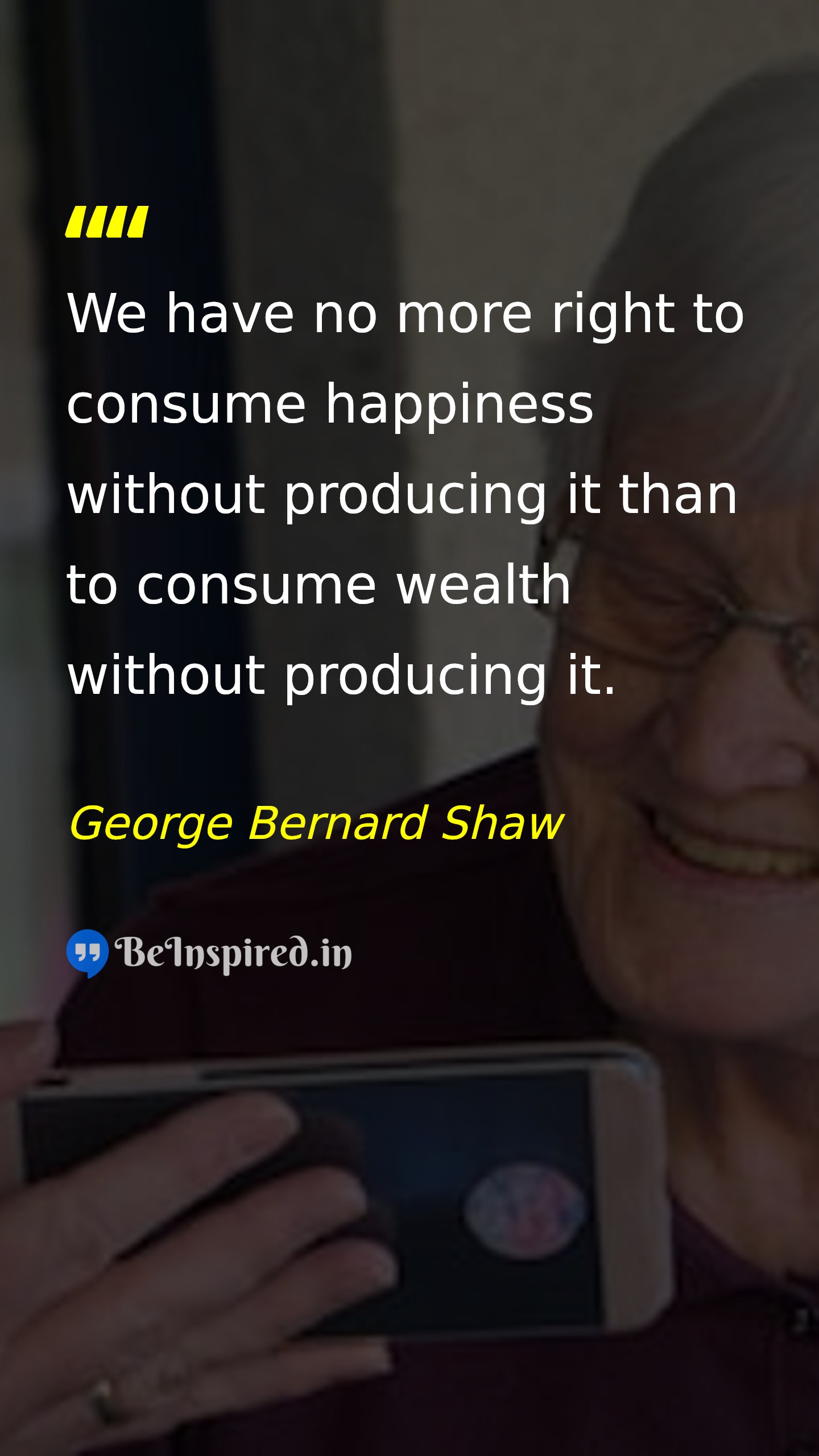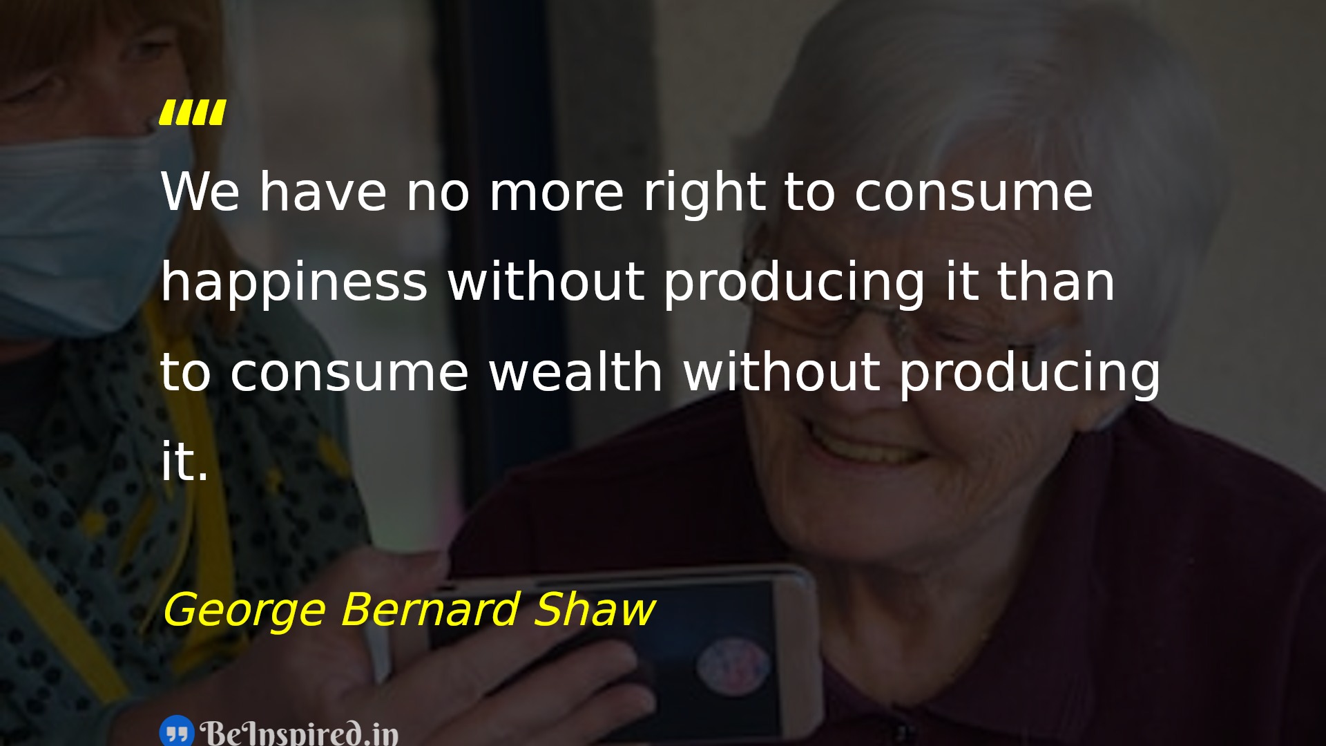 We have no more right to consume happiness without producing it than to consume wealth without producing it.