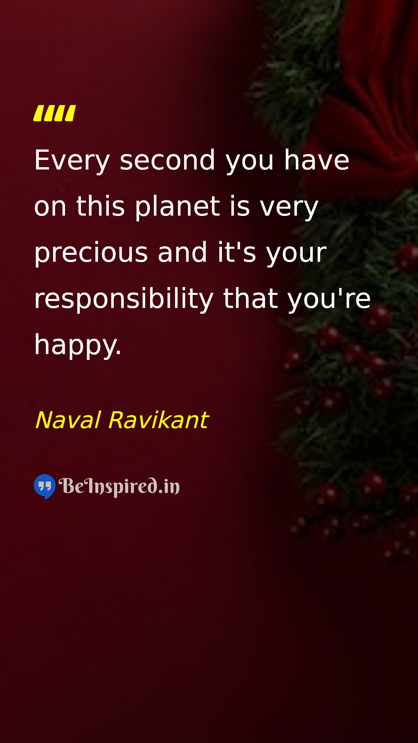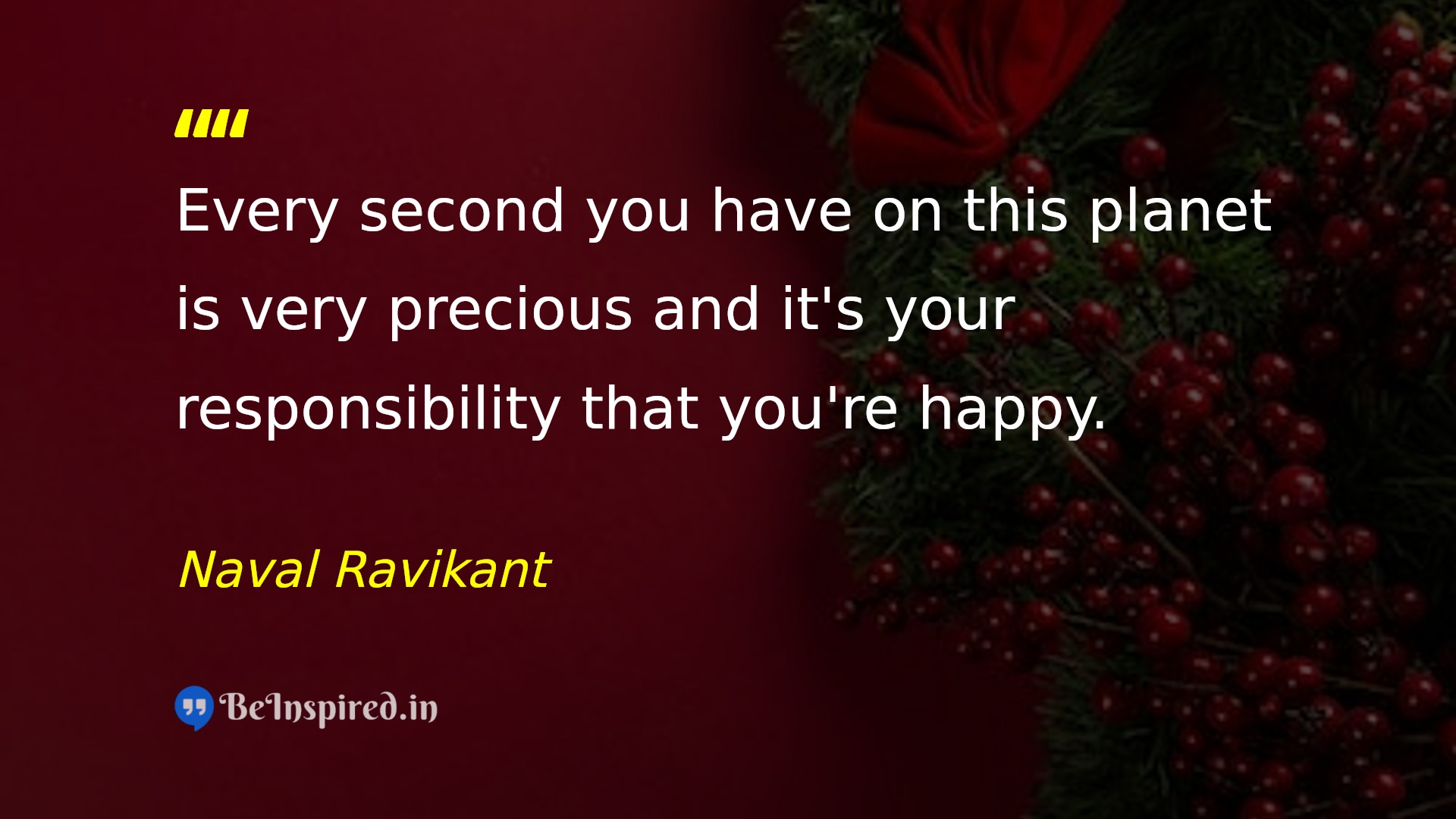 Every second you have on this planet is very precious and it's your responsibility that you're happy.