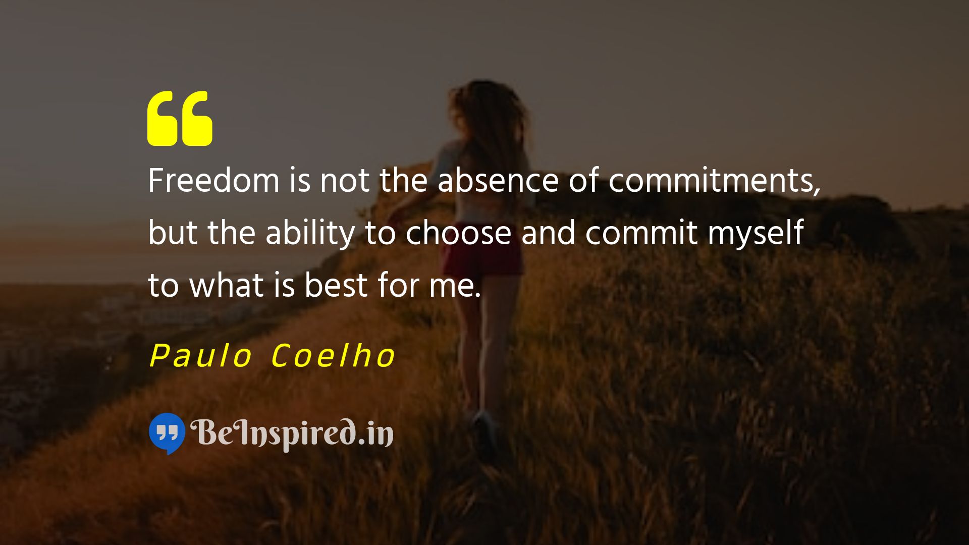 Freedom is not the absence of commitments, but the ability to choose and commit myself to what is best for me.